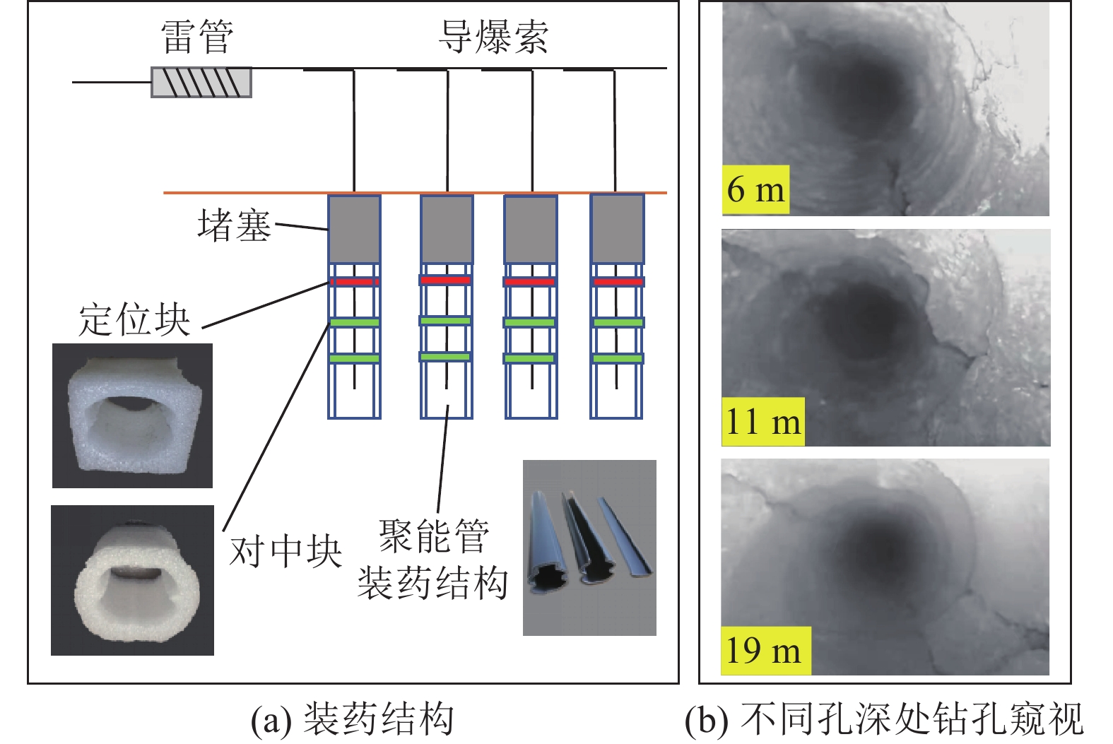1000mm. The engineering inspection effect after explosion was good, and directional pre-cracks were formed in the hole.