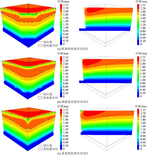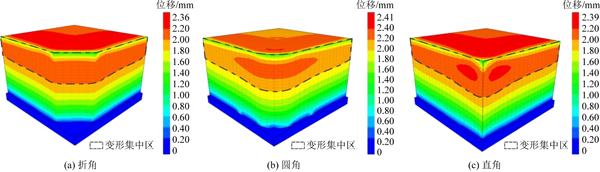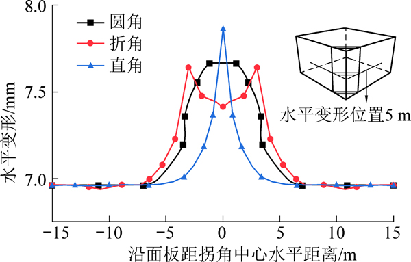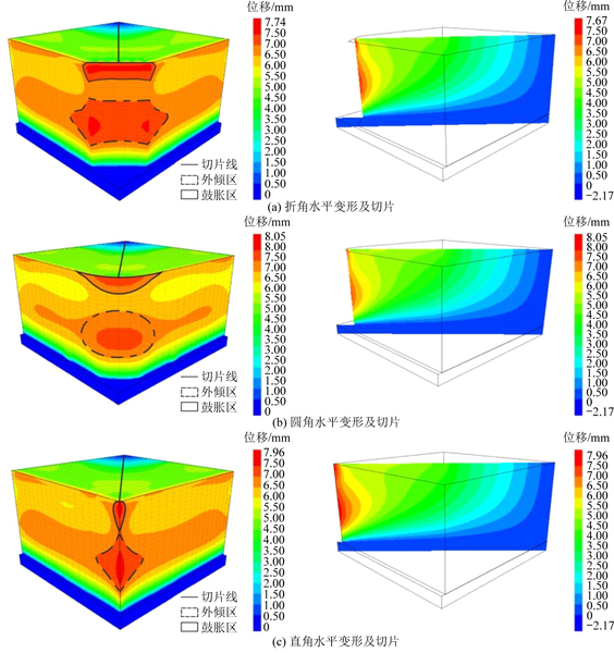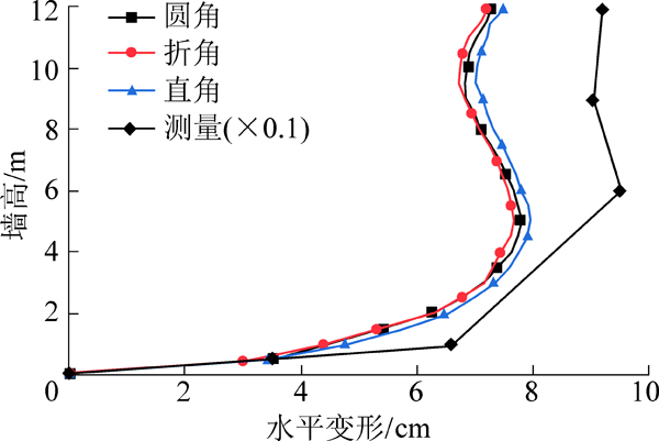 The shape and structure of the corner of the reinforced earth retaining wall are special,and the model is often simplified during the calculation process,making the part more prone to engineering problems than the straight part of the retaining wall.In order to explore the deformation characteristics of the different corners of the reinforced earth retaining wall,taking the bulging disease of the convex corner of a reinforced earth retaining wall as an example,the deformation and damage of the corner of the reinforced earth retaining wall are analyzed,and the finite difference software is used.FLAC3D simulates several common forms of convex corners,namely three types of corners:angle,right angle and round corner.The overall deformation,vertical deformation and horizontal deformation of the convex corner of the reinforced earth retaining wall are analyzed.Starting from the structural characteristics of the corner form,the reasons for the different characteristics of the three types of corner forms in the bulging deformation area at the corners are analyzed.The results show that the deformation of the reinforced earth retaining wall is concentrated on the retaining wall.The vertical deformation has a great influence on the development of the overall deformation.The maximum vertical deformation position of the three corner forms is different from the panel,and the rounding distance is the closest.The angle of the corner is centered,the right angle is the farthest; the 1/4-2/3 section of the corner wall is the bulging area,and the top of the wall is the camber area; in terms of overall deformation and horizontal deformation,especially in the panel shape In the horizontal deformation,the structural feature of the angled form makes it more advantageous in the diffusion of stress and strain,so that it has the smallest maximum deformation value among the three forms,that is,the folding angle is better than the other two forms in controlling deformation.Advantages,it is recommended to use it preferentially in engineering design.The numerical analysis results are in good agreement with the deformation law of the retaining wall revealed by the field deformation measurement results.The results can provide guidance for the optimization design of the reinforced soil retaining wall.