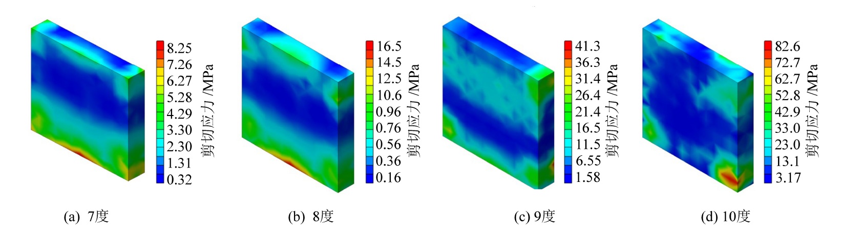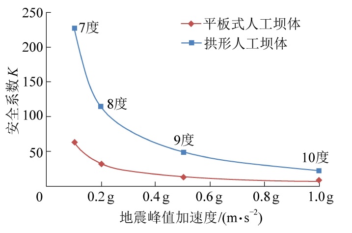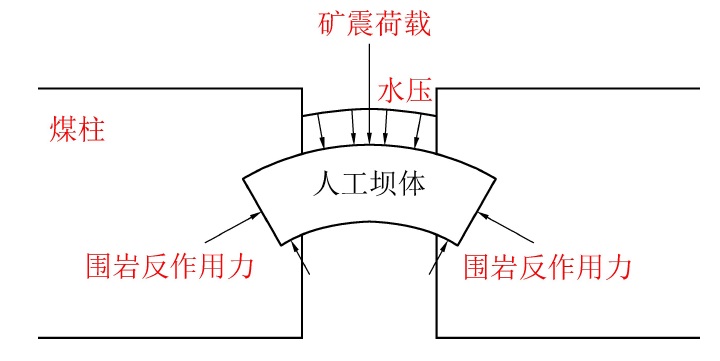 Coal mine underground reservoir has successfully constructed in Shendong Coal Mine Area in western China,as an original underground engineering str ucture.Safe operation is critical to coal mine underground reservoir.The dam of coal mine underground reservoir,especially artificial dam,is an important part for safe of the engineering.In order to ensure the safety of coal mine underground reservoirs under extreme conditions( such as mine earthquakes,earthquakes,etc.),it is necessar y to conduct seismic safety analysis of artificial dam structures.The artificial dam structure is generally flat. Considering that the damage of the dam structure undermin e earthquake or earthquake conditions is usually shear failure,a creative dam structure-artificial arch dam is put forward to improve the seismic performance of the artifi cial dam,and force of artificial plat and arch dam is analyzed.Using FEM,shear stresses and displacement cloud chart of artificial plat and arch dam is obtained,with diff erent earthquake intensity( 7,8,9 and 10 degree) and same numerical parameters.Weak position safety factors of artificial plat and arch dam are compared and analyze d.The result reveal following: the contact part between artificial dam and coal stratum is weakest of the coal mine underground reservoir; artificial dam is safe in operati on under extreme operating conditions due to the restraint of roof,floor,coal pillar and stratum,as the safety factor of artificial arch dam and artificial plat dam are 22.6 a nd 6.4 when earthquake intensity is 10 degree; the action of the arch causes partial compressive stress in the reaction force of the coal pillar on the artificial dam body, part of the seismic load received by the arch artificial dam body is transferred to the coal pillar dam body,reducing the artificial dam body shear caused by the mine eart hquake,which improves the seismic performance of the arched artificial dam.