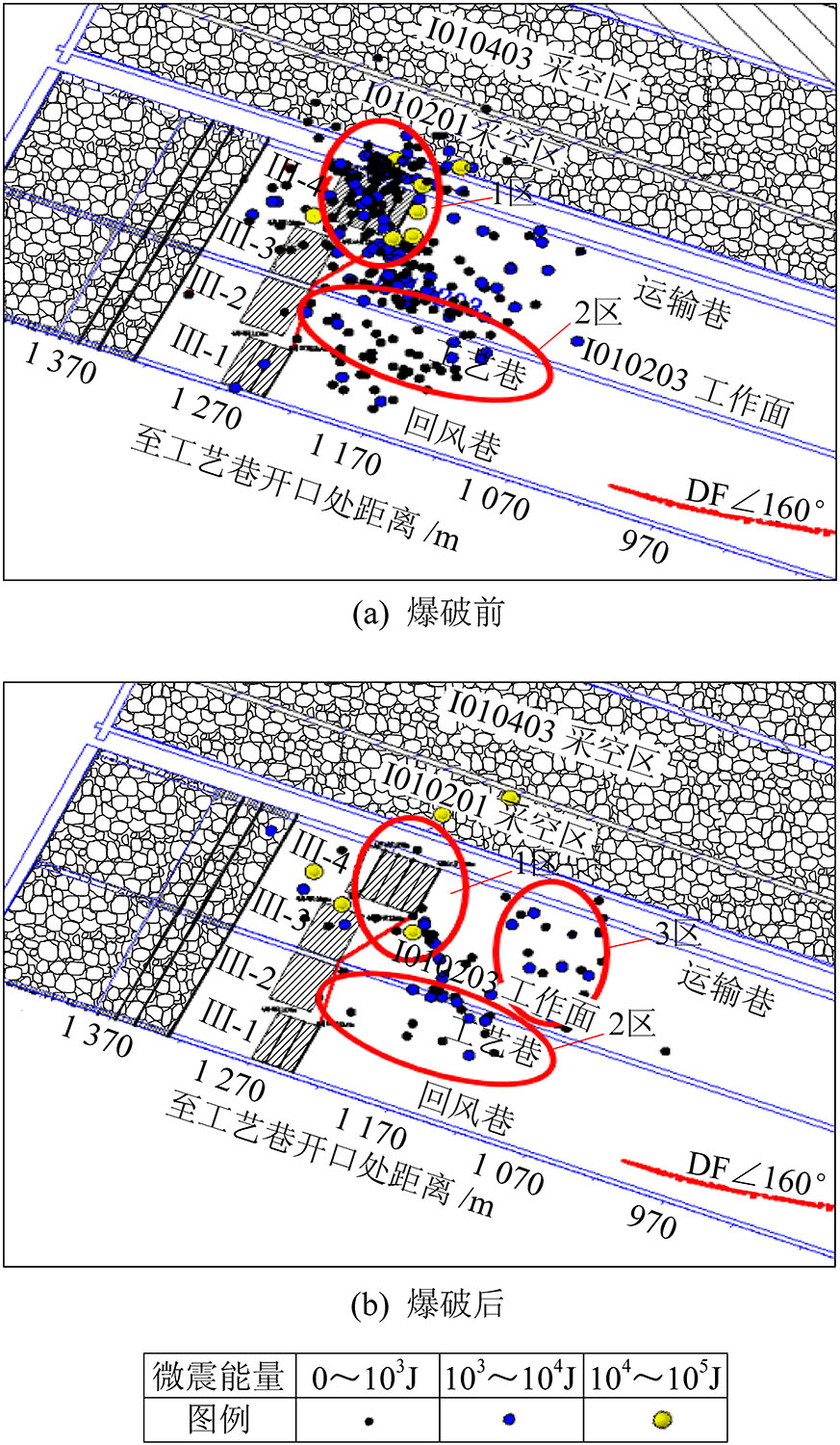 In order to study the main control factors and prevention techniques of rock burst in hard roof fully mechanized top coal caving mining face,microseismic monitoring system and rock burst monitoring system were used to study the main controlling factors of rock burst in the working face.The results show that the main factors of rock burst are high static load,strong mine shock and low support strength.The static load of the solid coal is 30.16~84.48 MPa and the static load of the coal pillar is 27.84~41.04 MPa,which is easy to reach the critical stress of rock burst.Events with high energy often occur before and after the roof break,and the stress concentration of the coal body is intensified by the dynamic load.Many factors made the supporting strength of roadway bump area relatively low.The field control practice was carried out,multiple stages of the coal seam blasting released stress,the roof was subjected to deep-hole pre-splitting blasting and the anchor cable beam was used to strengthen the support.When large energy mine earthquake happened,the roadway bump resistance ability was improved.The frequency and intensity of deformation induced by mine earthquakes were greatly reduced.