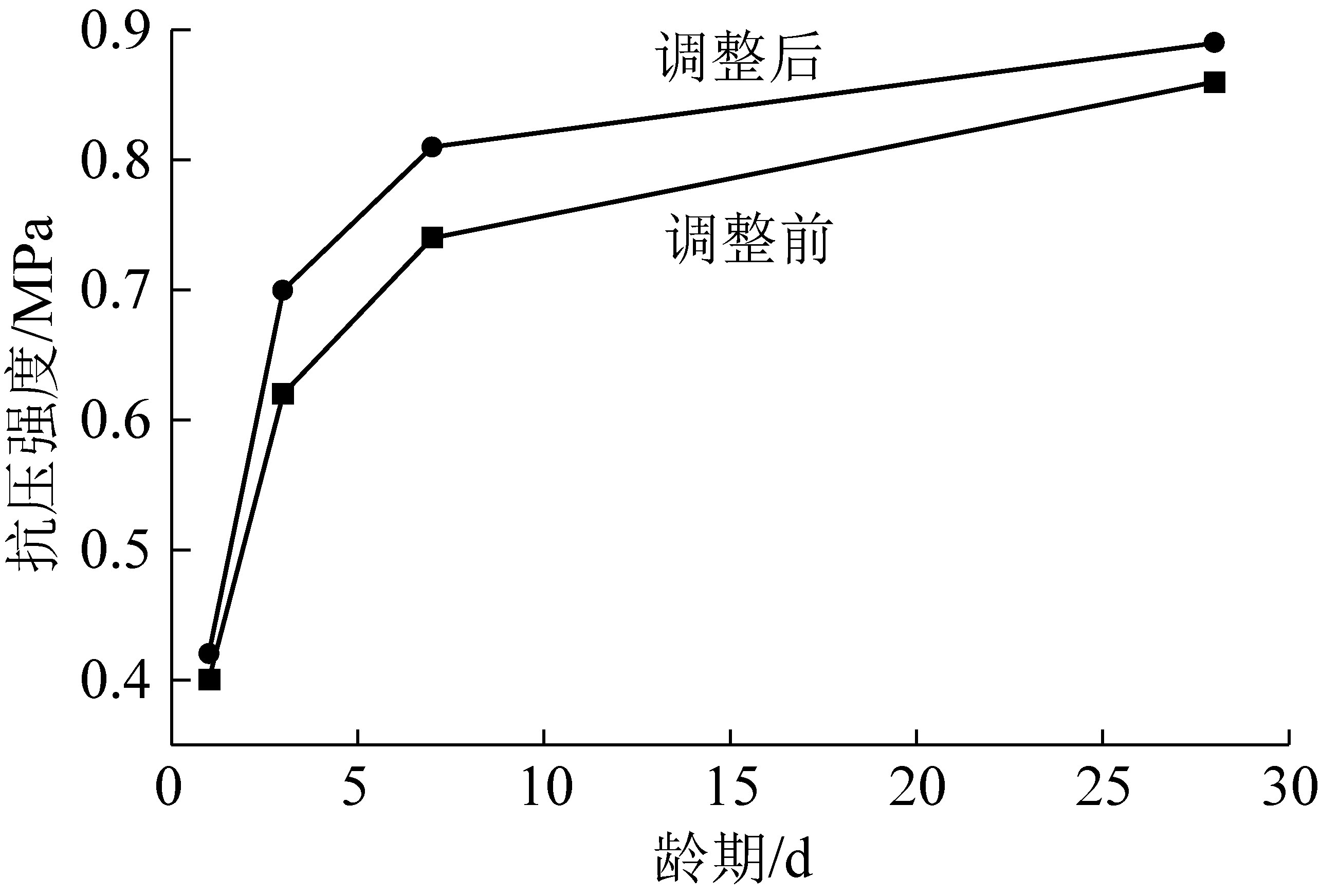 根据编号16191顶板动态仪的数据反馈,对充填材料配比做出调整,通过增加早强剂、速凝剂等外加剂来使充填体达到终强的时间缩短,调整前后其单轴抗压强度对比如图5所示。