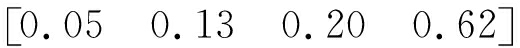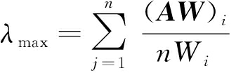 3)由式(6)、式(7)得CR=0.05<0.1,经判断矩阵的一致性检验可知,A具有满意的一致性。