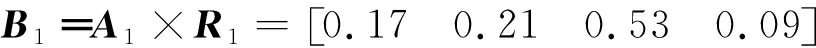 由式(6)、式(7)得CR=0.09<0.1,经判断矩阵的一致性检验可知,A1具有满意的一致性。