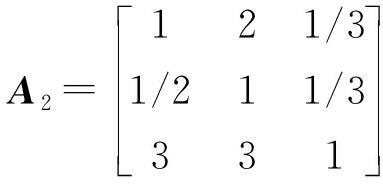 由式(6)、式(7)得CR=0.04<0.1,经判断矩阵的一致性检验可知,A2具有满意的一致性。