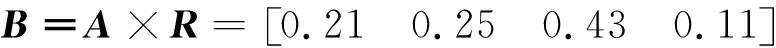 在模糊综合矩阵R和影响因素模糊子集A确定的情况下,对事件的模糊综合评价结果[22-25,26]为