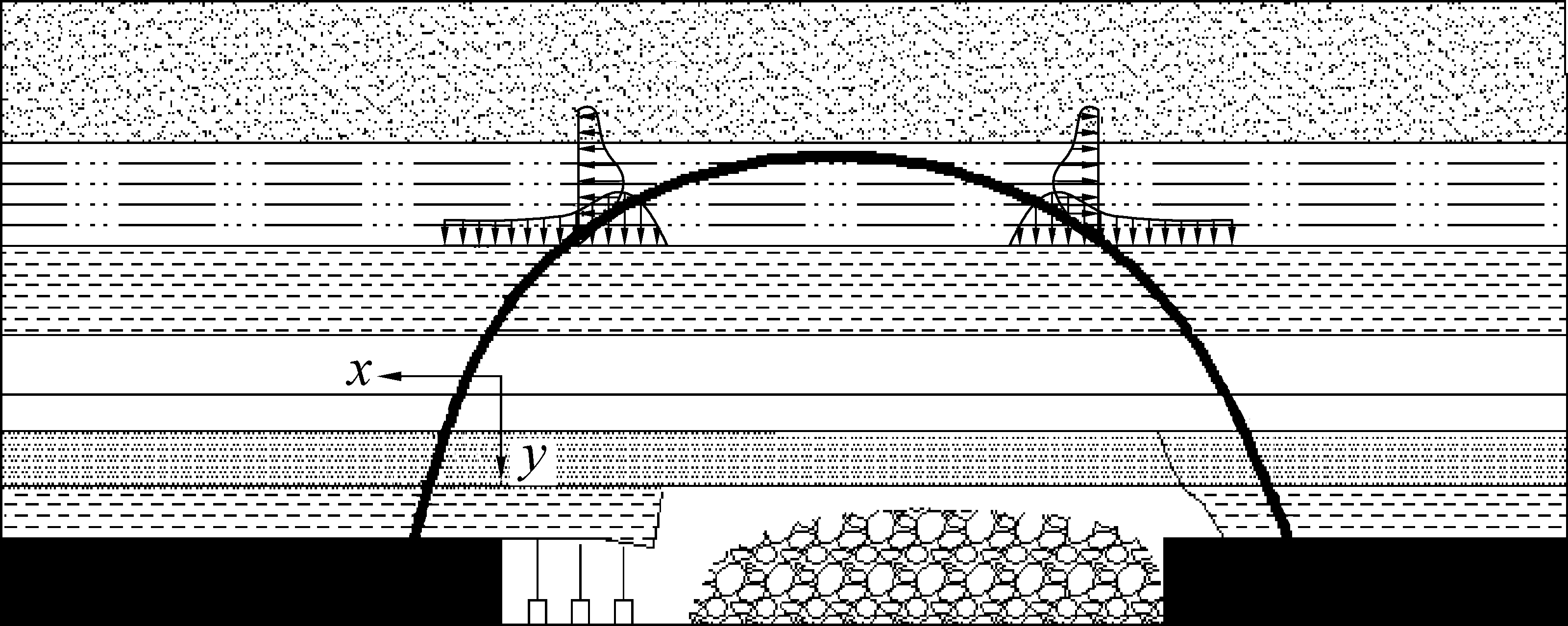 为更方便地说明浅埋深条件下承压拱应力结构的稳定条件,建立的承压拱力学模型如图7所示。