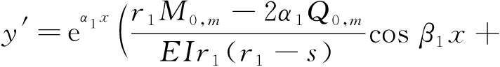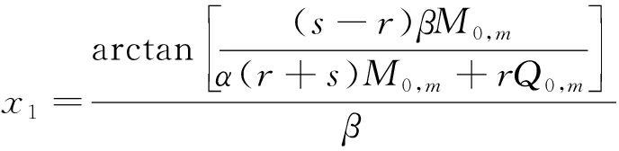 式中:M0,m为工作面煤壁位置(x=0)顶板第m层岩梁截面弯矩;Q0,m为工作面煤壁位置(x=0)顶板第m层岩梁截面垂直作用力。