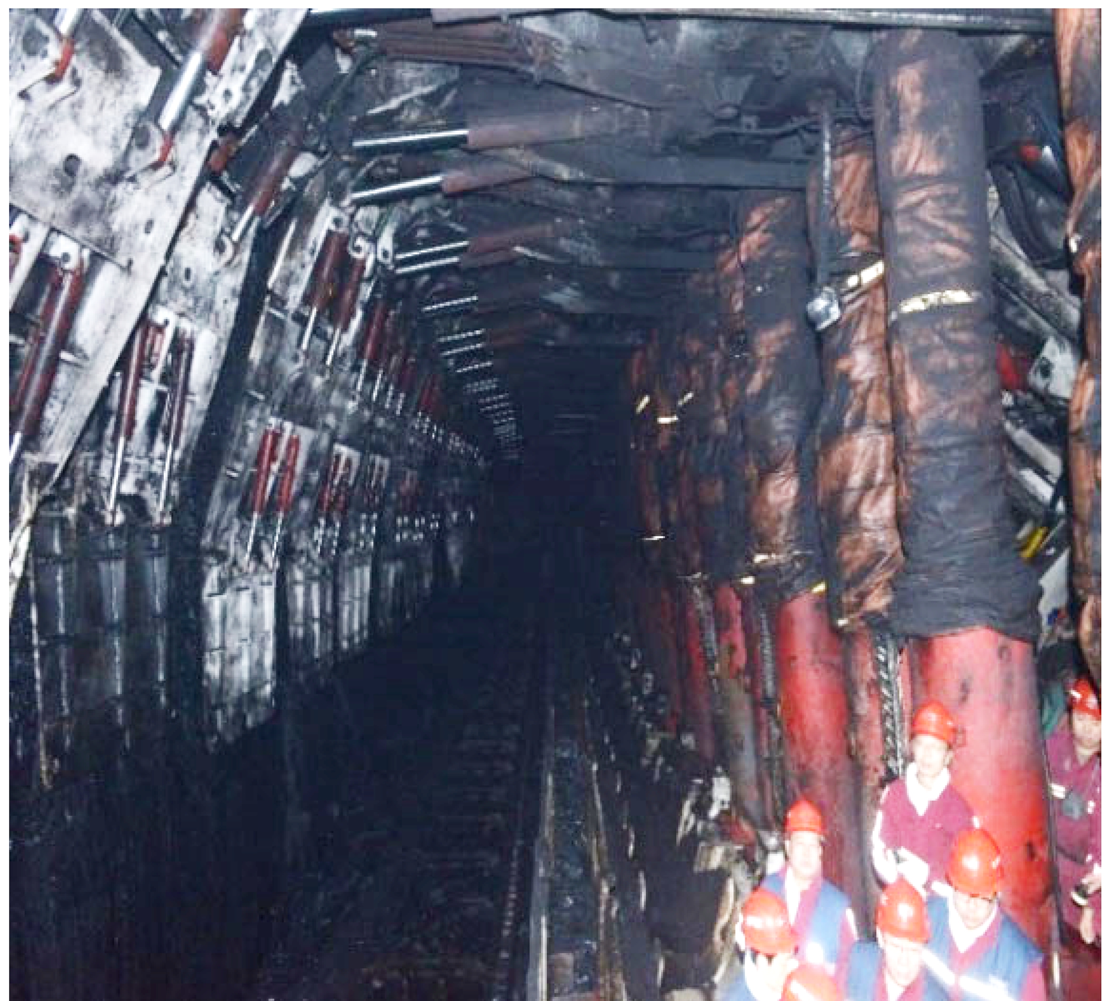超大采高综采割煤量和运煤量急速增加,难以实现稳定截割控制;大块片帮煤易造成瞬时煤量剧增,运输系统卡堵、压死的严重情况,可靠连续运行难度增大。基于采煤机行走位移检测、工作面仰俯角检测、调高油缸及摇臂角度监控等系统,解决了超大采高工作面采煤机机身三维空间位姿的全方位、高精度测量难题。在此基础上,开发了基于记忆割煤控制+人工干预+地质条件变化实时调整截割轨迹的控制策略,实现了采煤机高精度自动截割调控。根据运量负荷要求,开发了配置煤量自适应变频调速控制系统的槽宽1 400 mm、驱动功率3×1 600 kW的重型刮板输送机,提出了基于电流反馈的激光扫描煤量监测及智能调速方法,实现了重型装备的无级软启动、智能调速与采运协调;研制了槽宽1 400 mm的高强度自动伸缩机尾,实现了链条动态控制和自动张紧,提高了超大运量链条的可靠性;开发了落地式折叠机身的巷道可伸缩带式输送机,实现了工作面的连续快速推进。