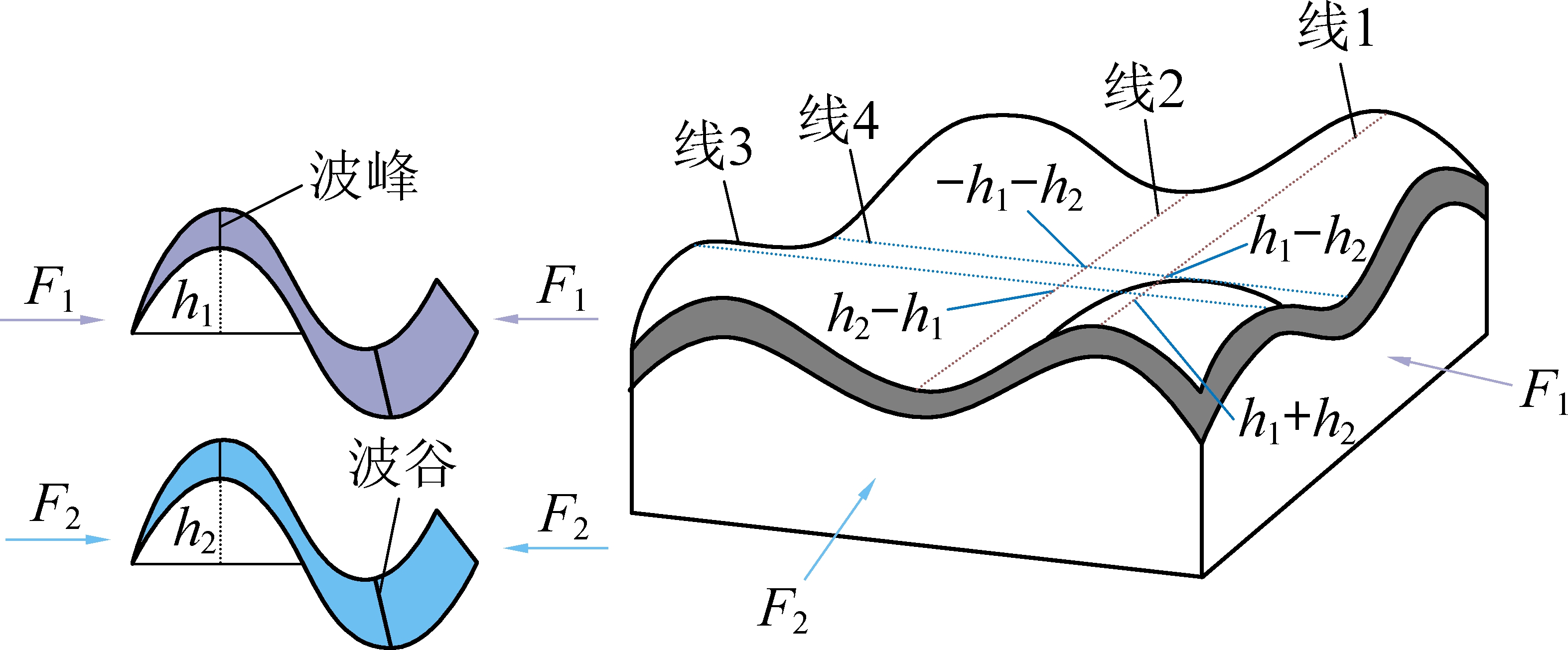 柿庄区块造褶运动主要受燕山期和喜山早期两期构造运动的作用,且两期构造运动的最大主应力方向近似垂直,基于上述假设和处理,燕山期和喜山早期的构造作用可以简化为两个近似垂直的波的叠加。背斜的枢纽类似于波峰,向斜的枢纽类似于波谷(图7),煤层底板构造形迹的变化遵从波叠加规律,具体操作如下: