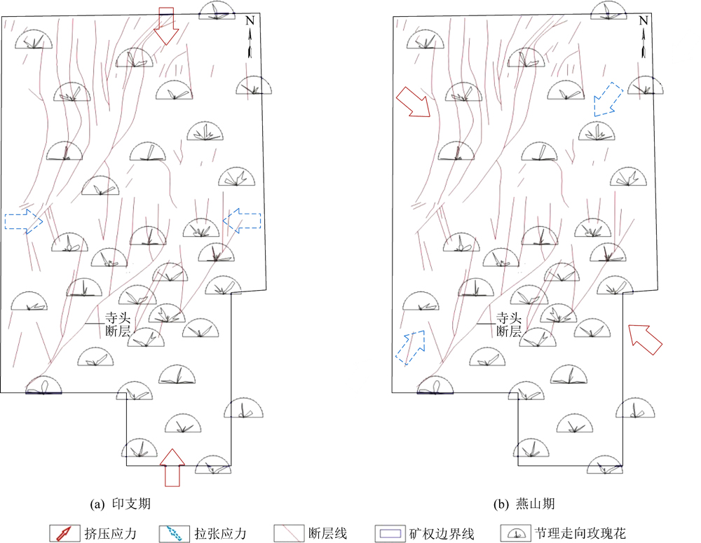 Fig.4 Tectonic stress fields of Indochina and Yanshanian periods