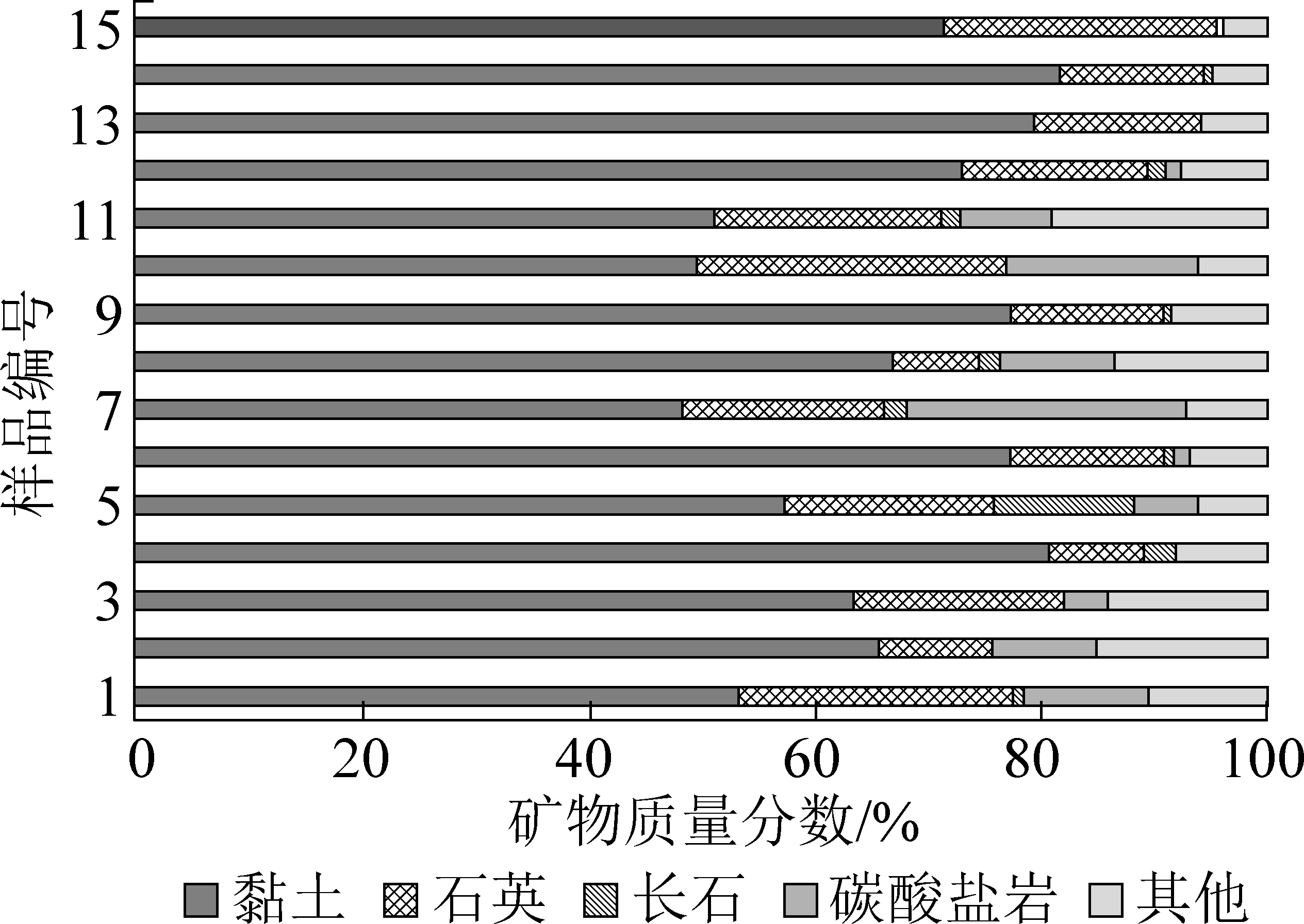 Fig.4 Mineral composition distribution of mud shale of Longtan Formation
