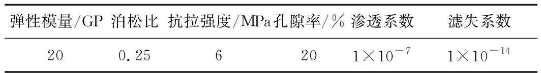 弹性模量/GP泊松比抗拉强度/MPa孔隙率/%渗透系数滤失系数200.256201×10-71×10-14