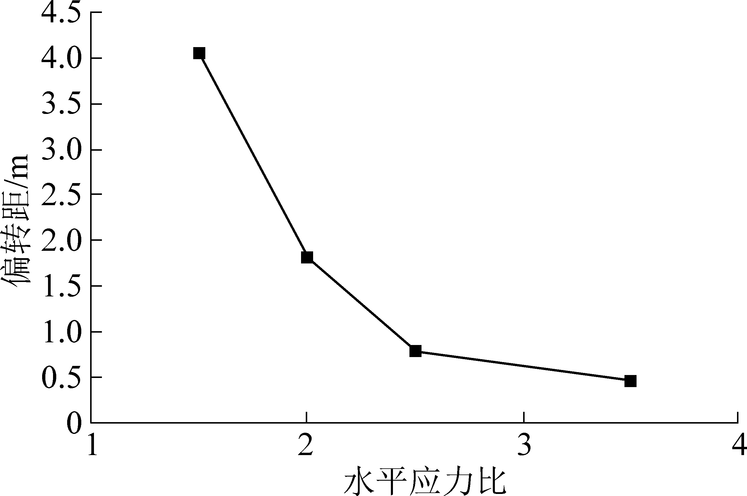 图6 水平应力比-偏转距曲线