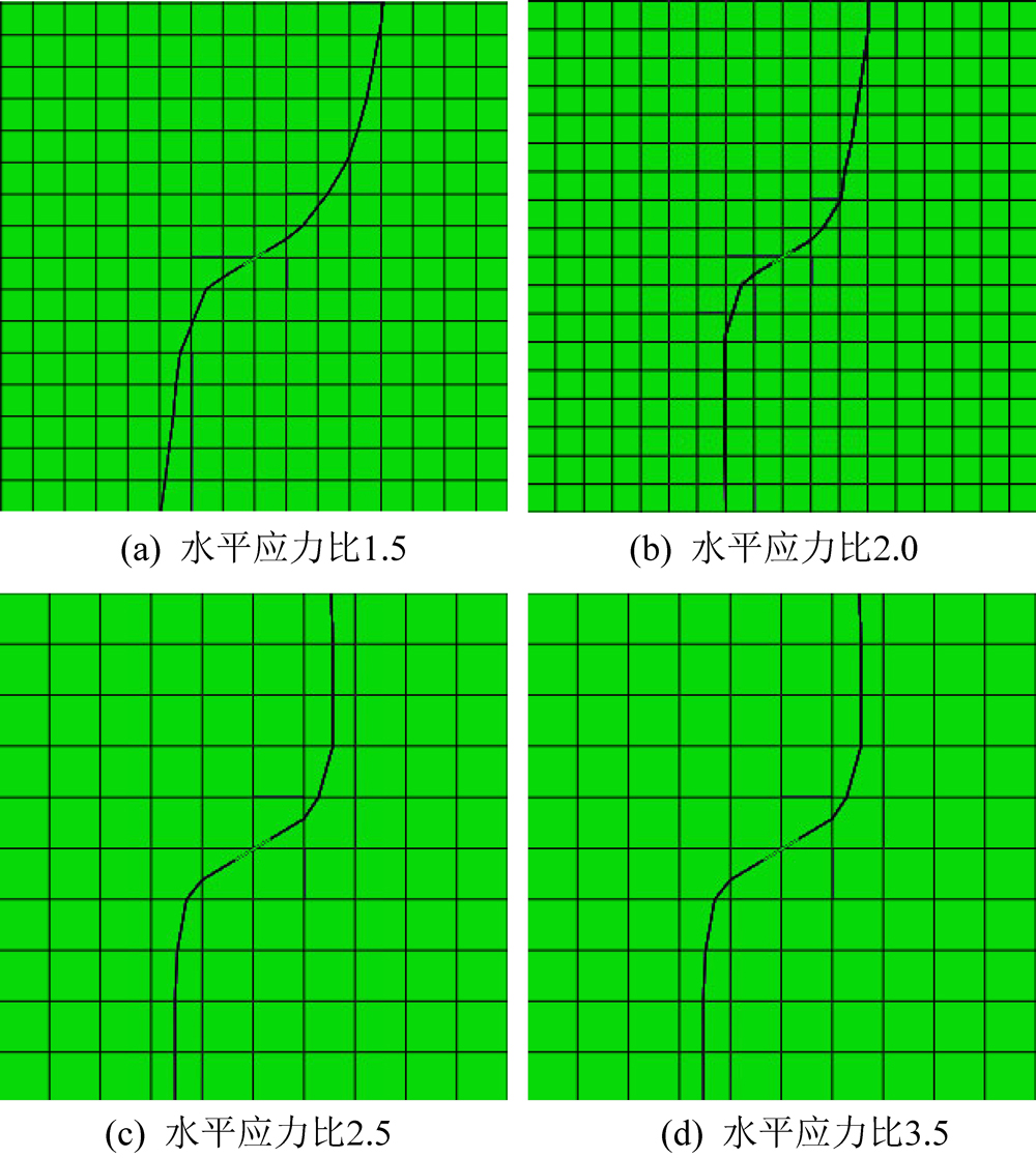 Fig.5 Crack propagation at different horizontal stress ratios
