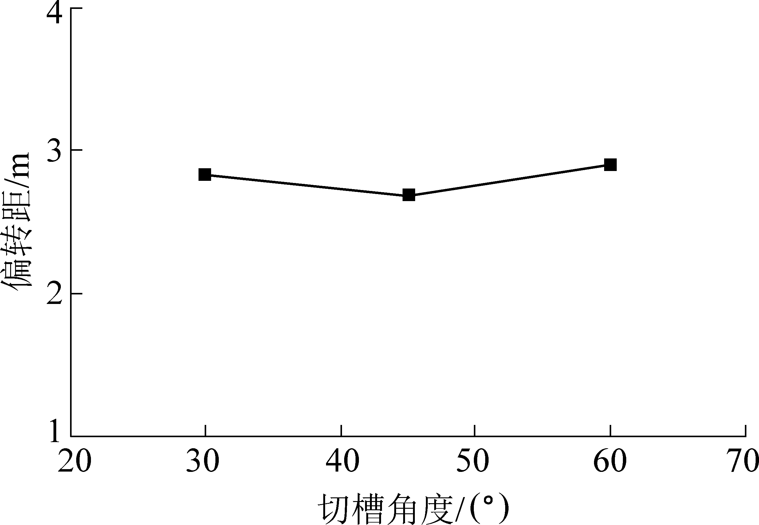 图8 切槽角度-偏转距曲线