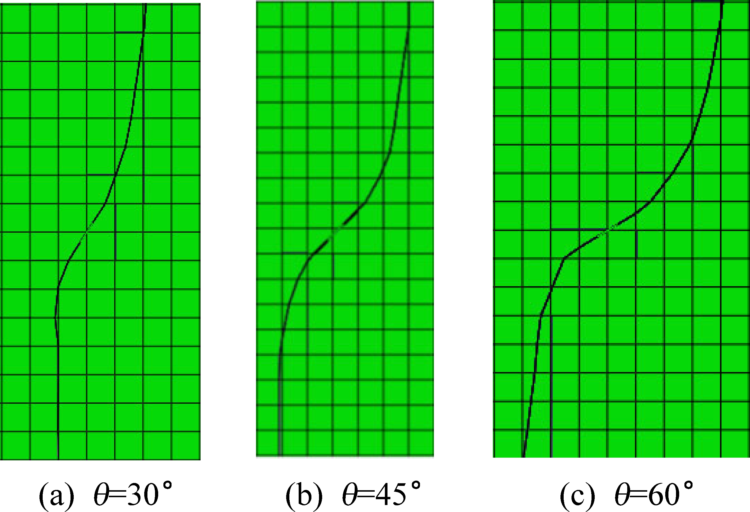 Fig.7 Crack propagation at different cutting angles