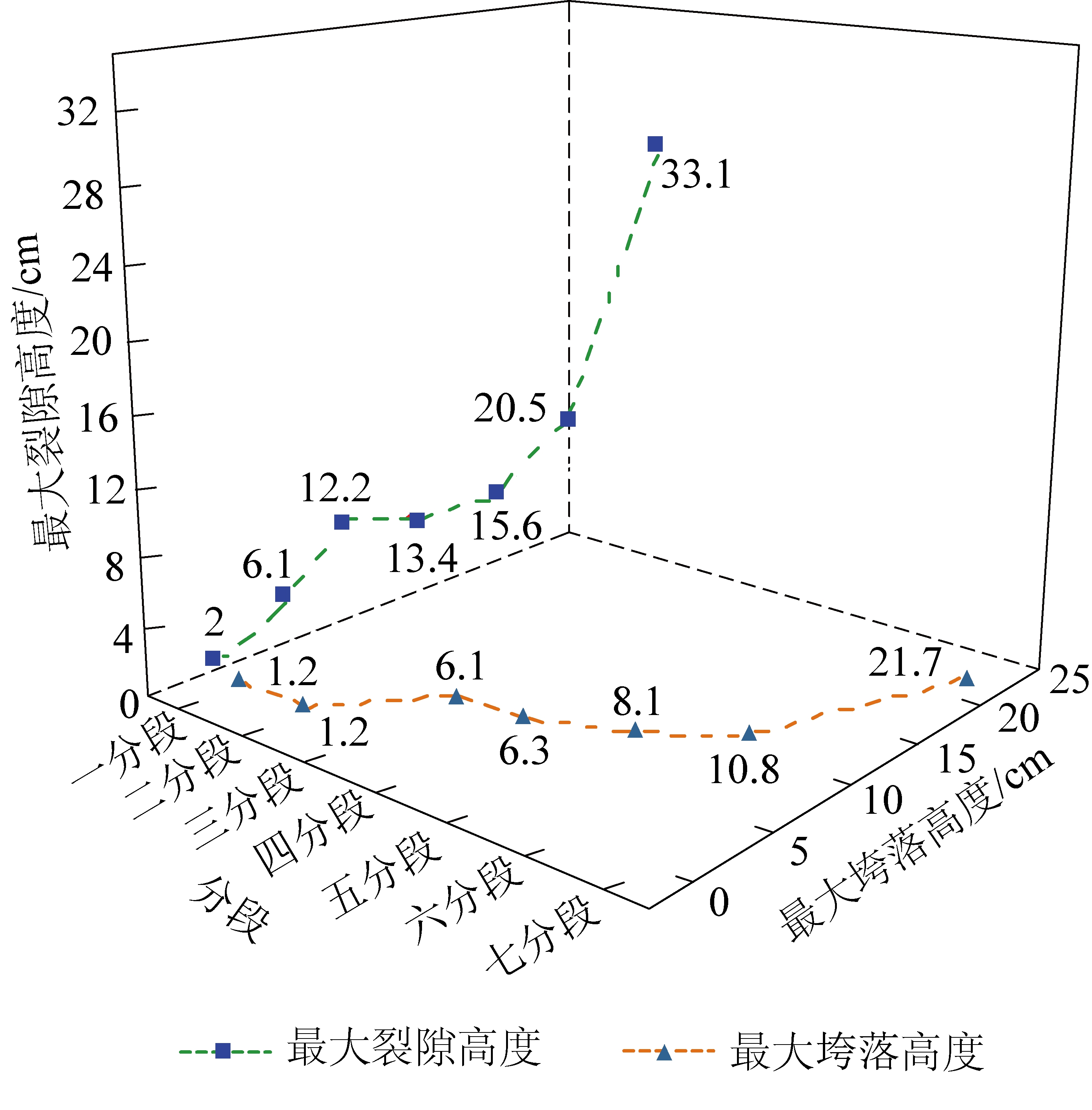 Fig.8 The maximum collapse and crack height after each segment of mining
