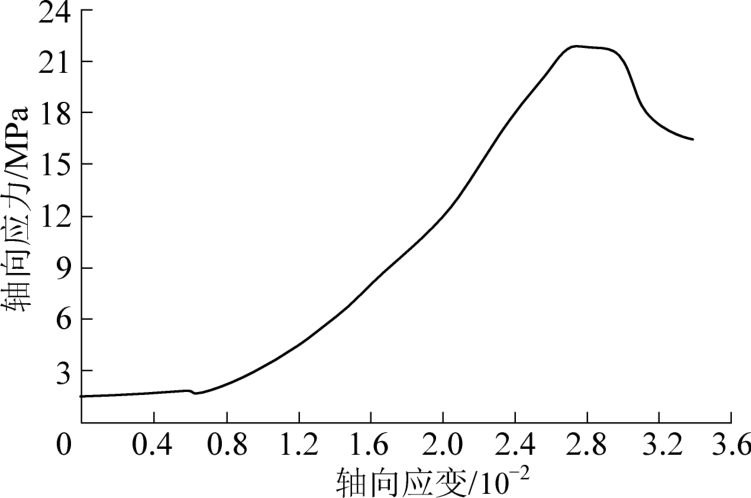 1)固结体强度高。 取朱集东矿1122(3)工作面DF112 断层区域煤体和顶板矸石,矸石以泥岩为主,按照筛选后体积比(矸石与煤块体积比为2 ∶1)充填于实验容器内,空隙分布形态与空隙率尽量满足断层破碎带实际条件,孔隙率在1%~4%,与断层孔隙率接近,满足相似条件。 矸石与煤块混合注浆7 d后,取心后制作的试件单轴抗压强度为21 ~24 MPa(图1)。