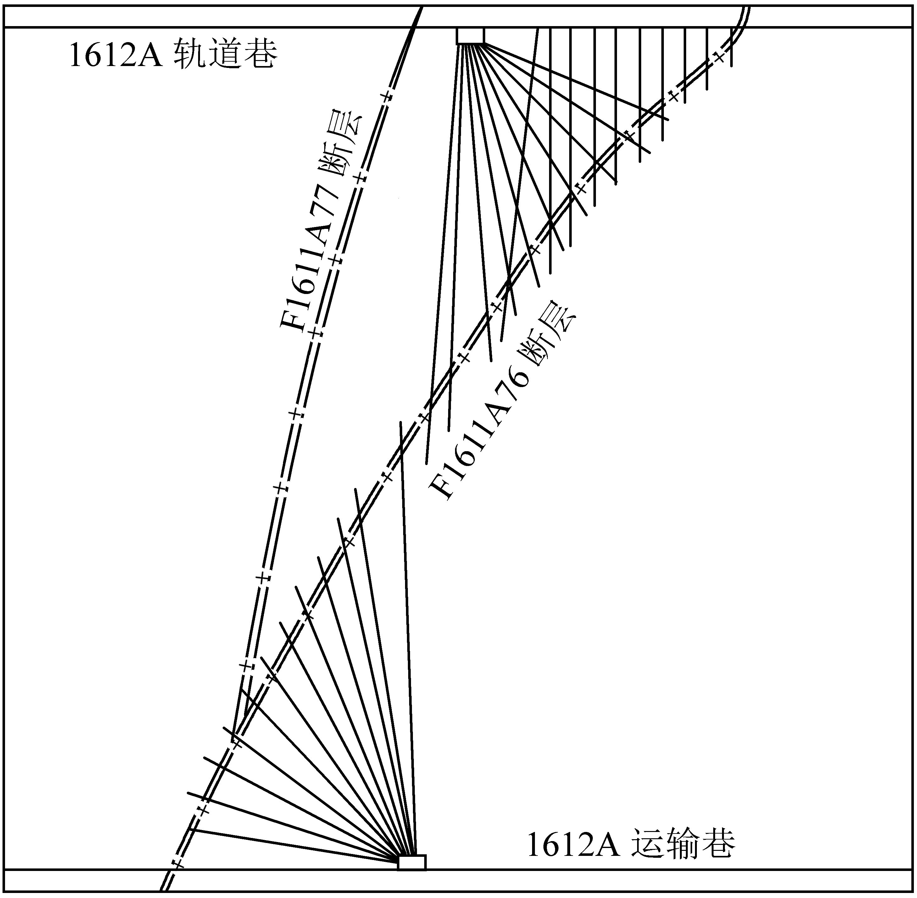 Fig.5 Pre-reinforcement design of No.F1611A76 fault in No.1612A working face