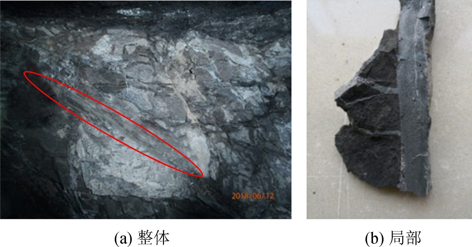 2)采用YZG12 钻孔成像及分析系统,对12223工作面3 号异常区注浆前后钻孔情况进行了对比分析,注浆前破碎带四周裂隙发育,成孔困难,注浆后钻孔内表面光滑,成型较好,观测段无塌孔。 工作面推进至3 号异常区终采线位置时,工作面顶板及煤壁未发生漏冒及片帮现象,支架保持正常工作状态,顺利实现了支架安全回撤。 图4 为断层组附近回撤通道内揭露的煤岩体浆液扩散情况。