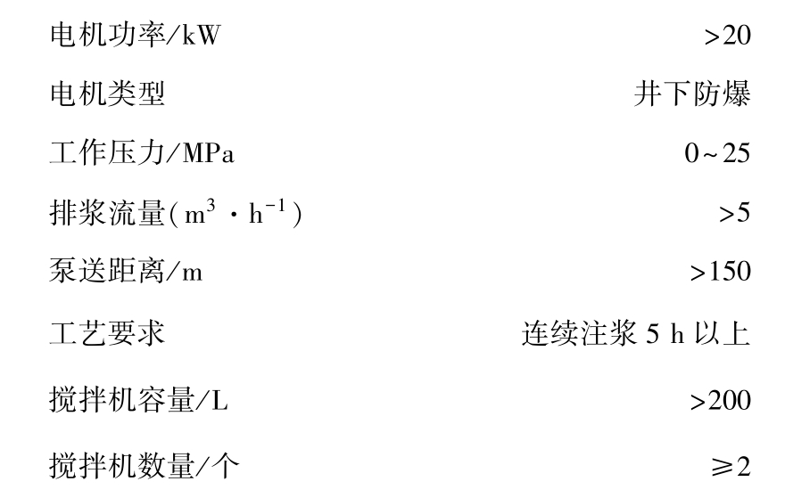 经过多次现场试验总结,给出注浆泵选型参考技术参数:
