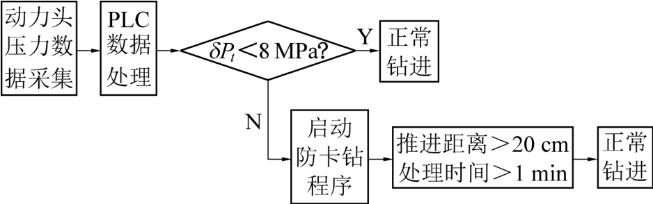 正常钻进时δ Pt 变化范围在3 MPa 以内,经现场多次试验验证,当δ Pt 超过8 MPa 时,钻机有较大概率发生卡钻。 防卡钻工作流程如图3 所示。