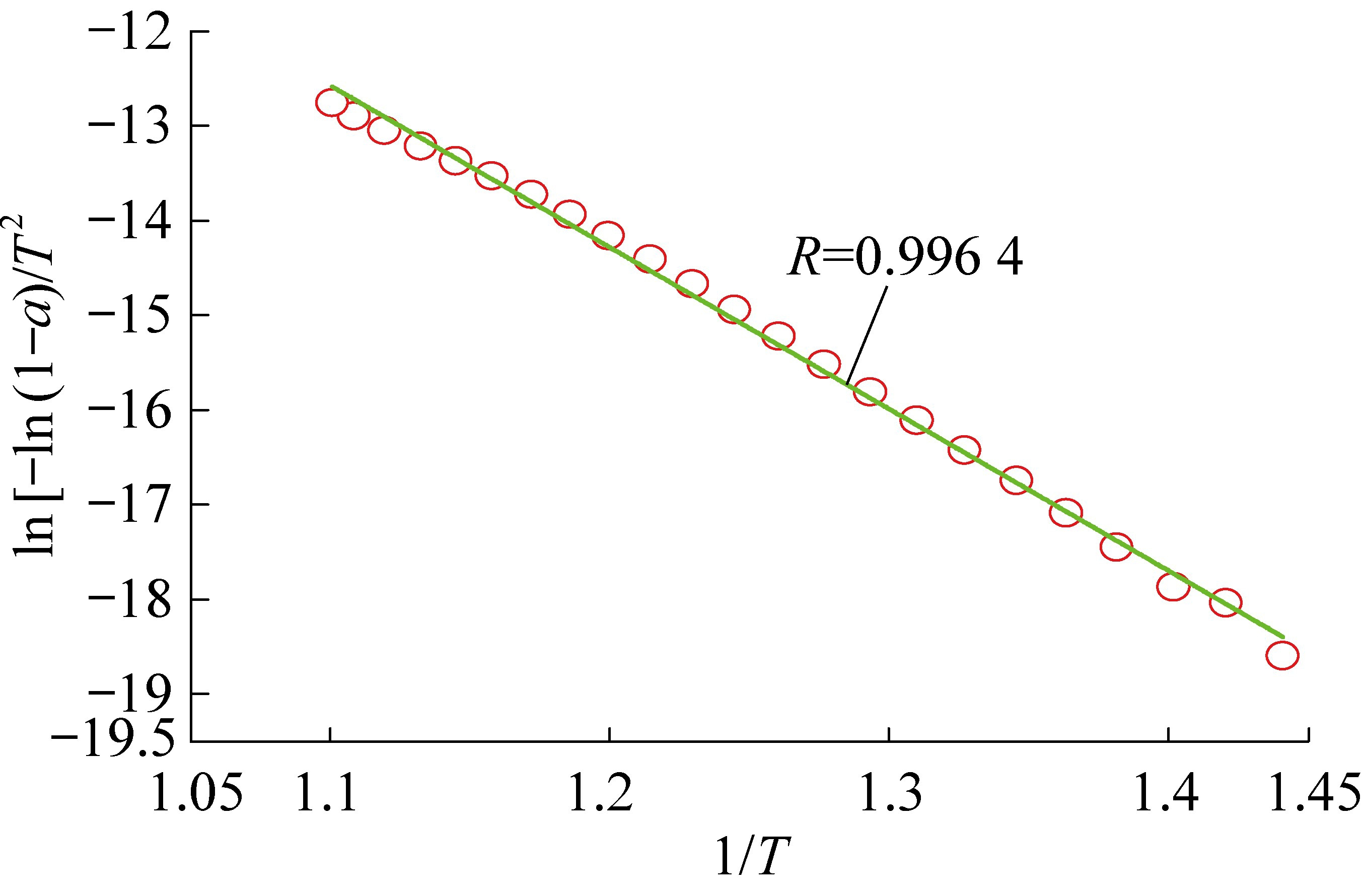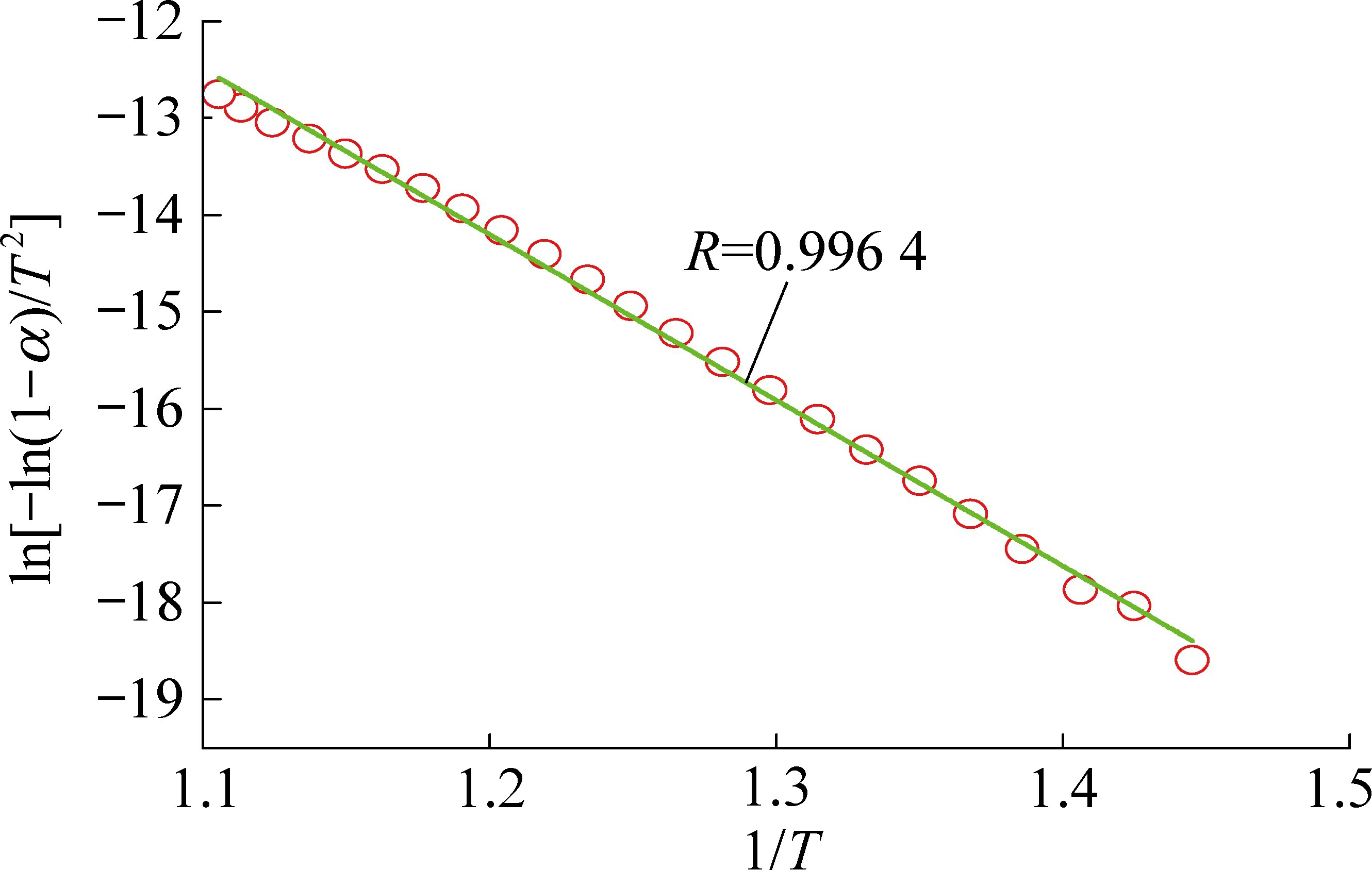 图4 煤粉空气中燃烧的Coats-Redfern 动力学分析曲线