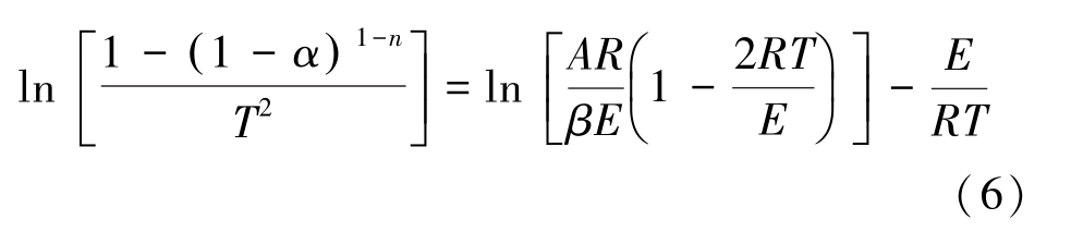 对式(4)整理后得到Coats-Redfern 方程如下: