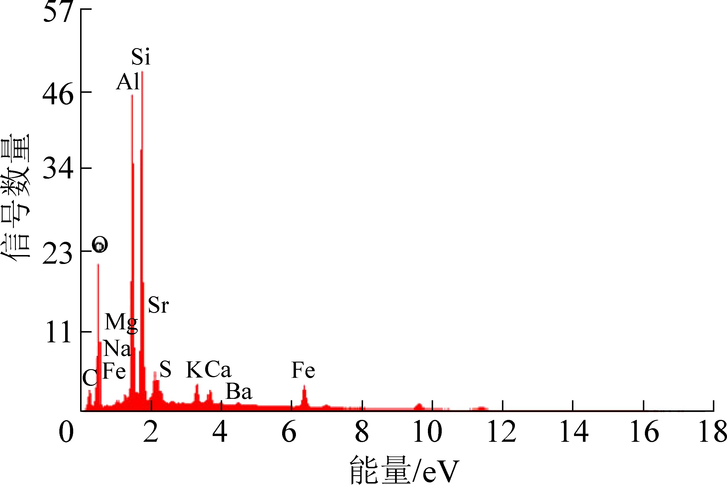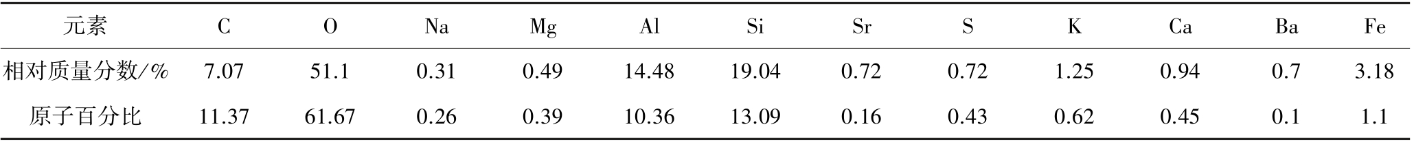 元素 C O Na Mg Al Si Sr S K Ca Ba Fe相对质量分数/% 7.07 51.1 0.31 0.49 14.48 19.04 0.72 0.72 1.25 0.94 0.7 3.18原子百分比 11.37 61.67 0.26 0.39 10.36 13.09 0.16 0.43 0.62 0.45 0.1 1.1