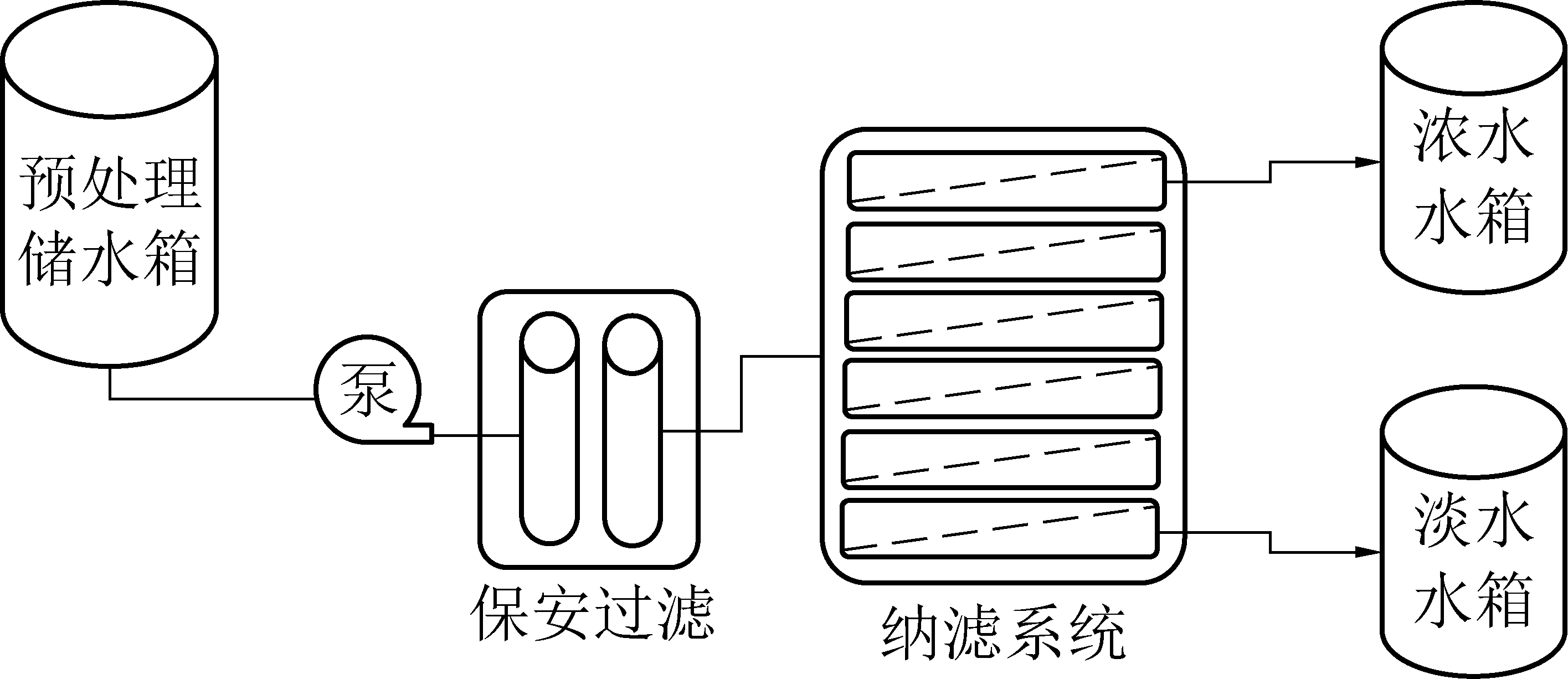 纳滤适度脱盐工艺研究的主要内容包括:结合矿井及周边实际用水需求和受纳水体的水质要求,按照“分级分质回用[18]、用污排净和达标排放”的系统性统筹优化原则,设计出满足特定矿区基本用水需求或达标排放要求的最低成本回用方案和净化工艺,进而避免因过度脱盐[19]而产生的额外费用,通过降低运行压力并适当降低产水水质实现节能、降耗以及对矿区水资源的合理、有效配置。