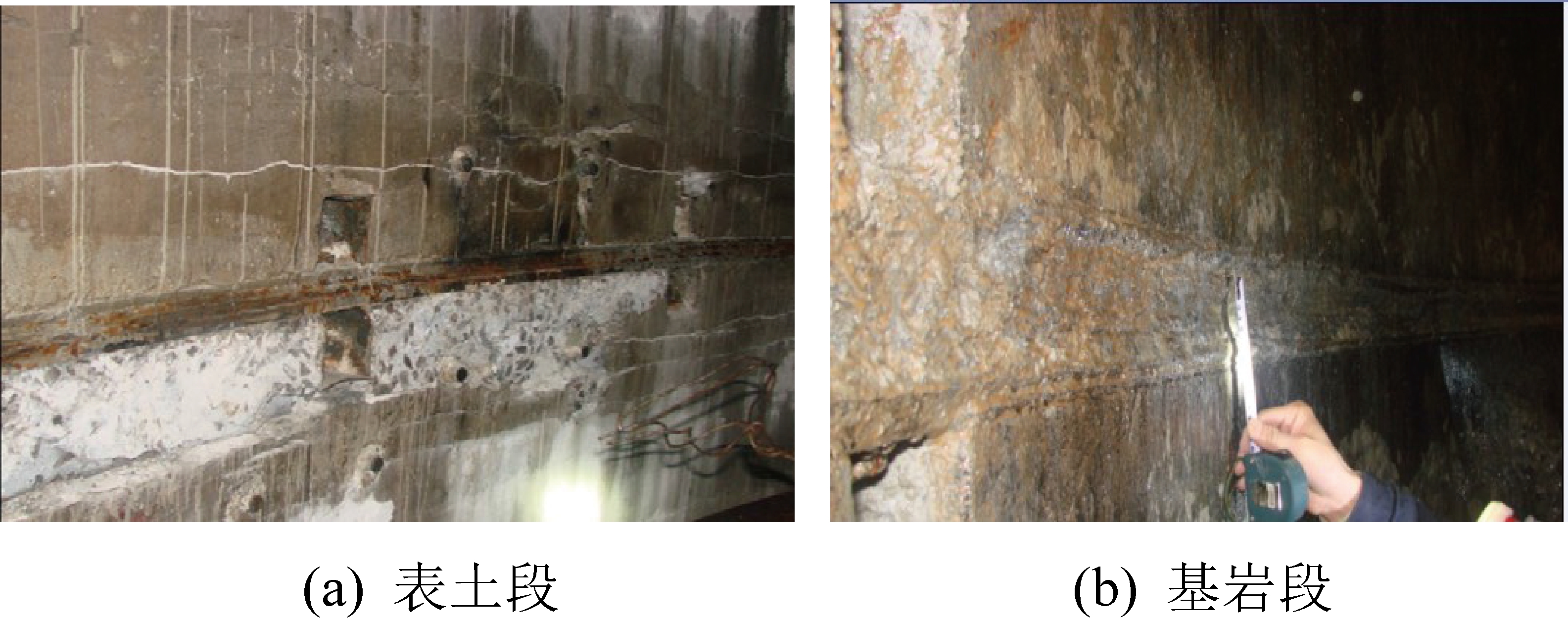 主、副、风3个井筒在修复施工排水清淤后井壁检查表明,副井井筒突水溃砂引发了主、风井井壁次生破坏,其中副井破坏最严重,中央风井次之,主井最轻。
