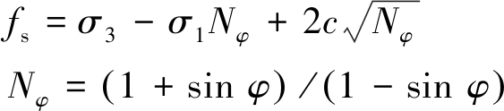 式中:c为煤岩体黏聚力;φ为内摩擦角;σ1、σ3为第1、第3主应力。