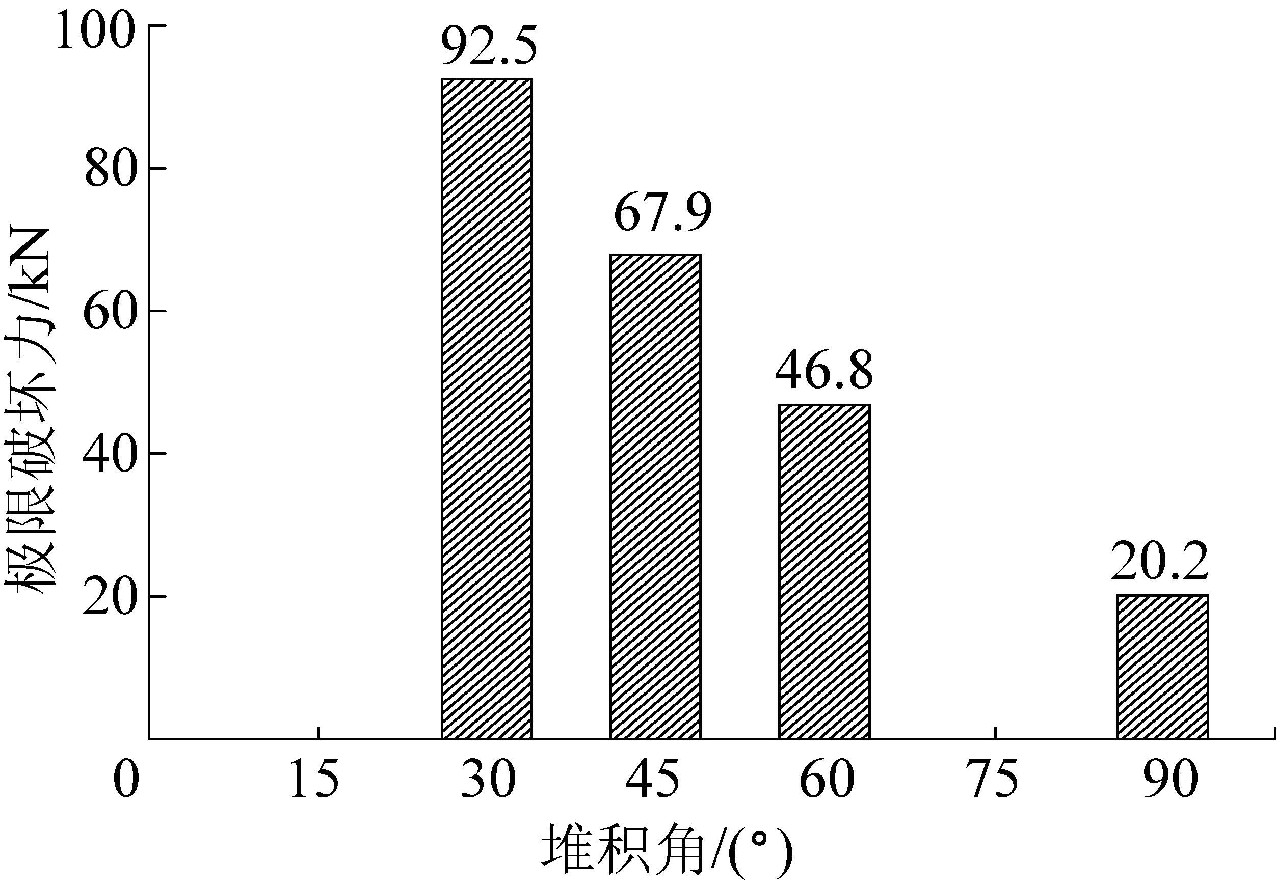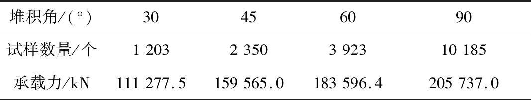 堆积角/(°)30456090试样数量/个12032350392310185承载力/kN111277.5159565.0183596.4205737.0