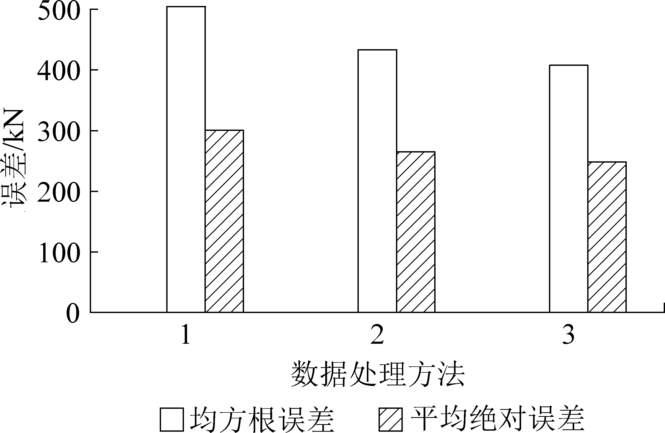 权重系数w1w2均方根误差/kN平均绝对误差/kN误差和/kN1.00407.708266.560674.2680.90.1367.574237.751605.3250.80.2330.957213.933544.8900.70.3297.181191.721488.9020.60.4267.327171.596438.9230.50.5242.844153.862396.7060.40.6225.491139.317364.8080.30.7216.982128.325345.3070.20.8218.356121.335339.6910.10.9229.436130.105359.54101.0248.927139.196388.123