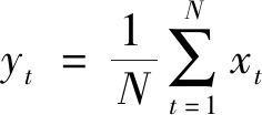 其中:N为样本数量;xt为时刻t的矿压采样值;yt为采样值的算术平均值。由式(2)可见,算数平均值滤波实质是将N个采样值相加求平均作为时刻t的值。