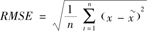 选用均方根误差(RMSE)、平均绝对误差(MAE)作为评估各组权重系数对应的Prophet+LSTM模型效果的标准,计算公式如下