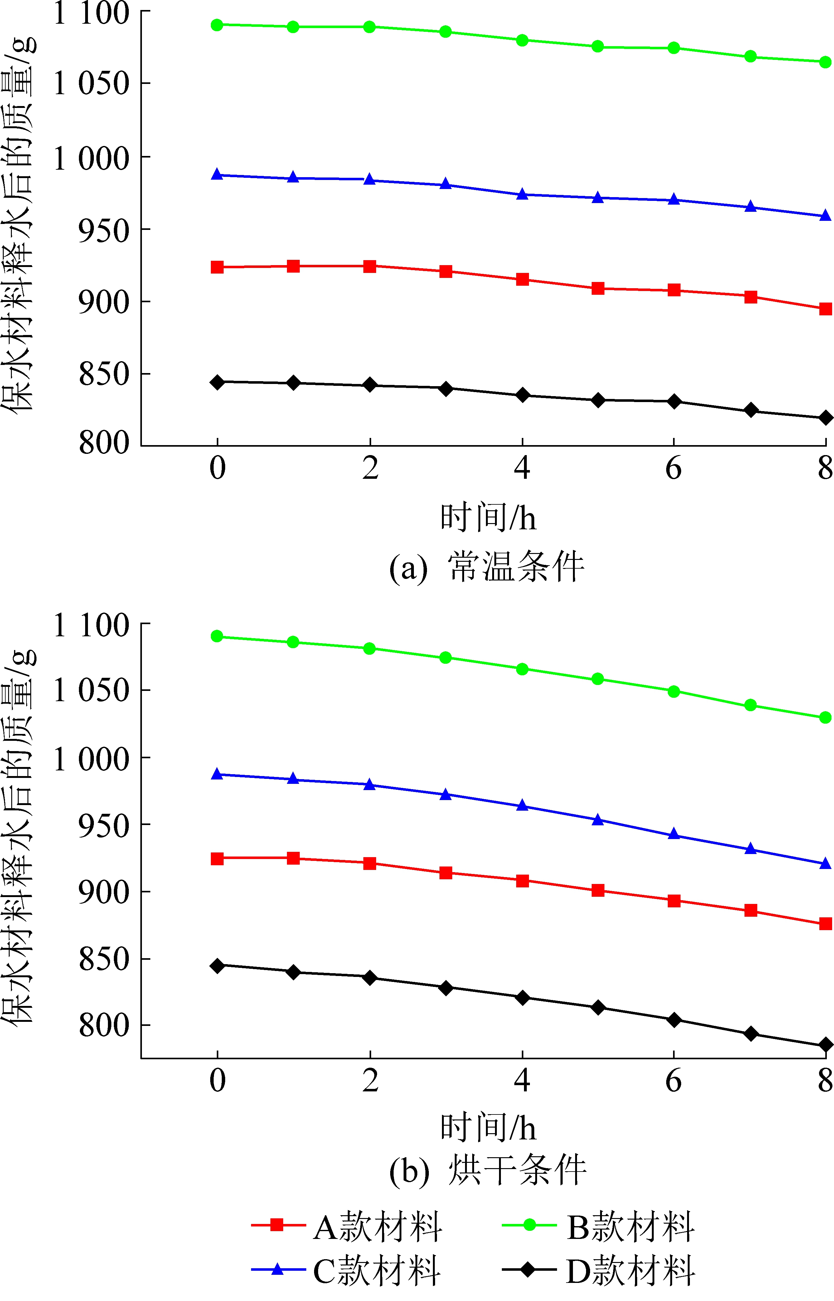 图4 等质量饱和保水材料在烘干条件下的释水特性曲线