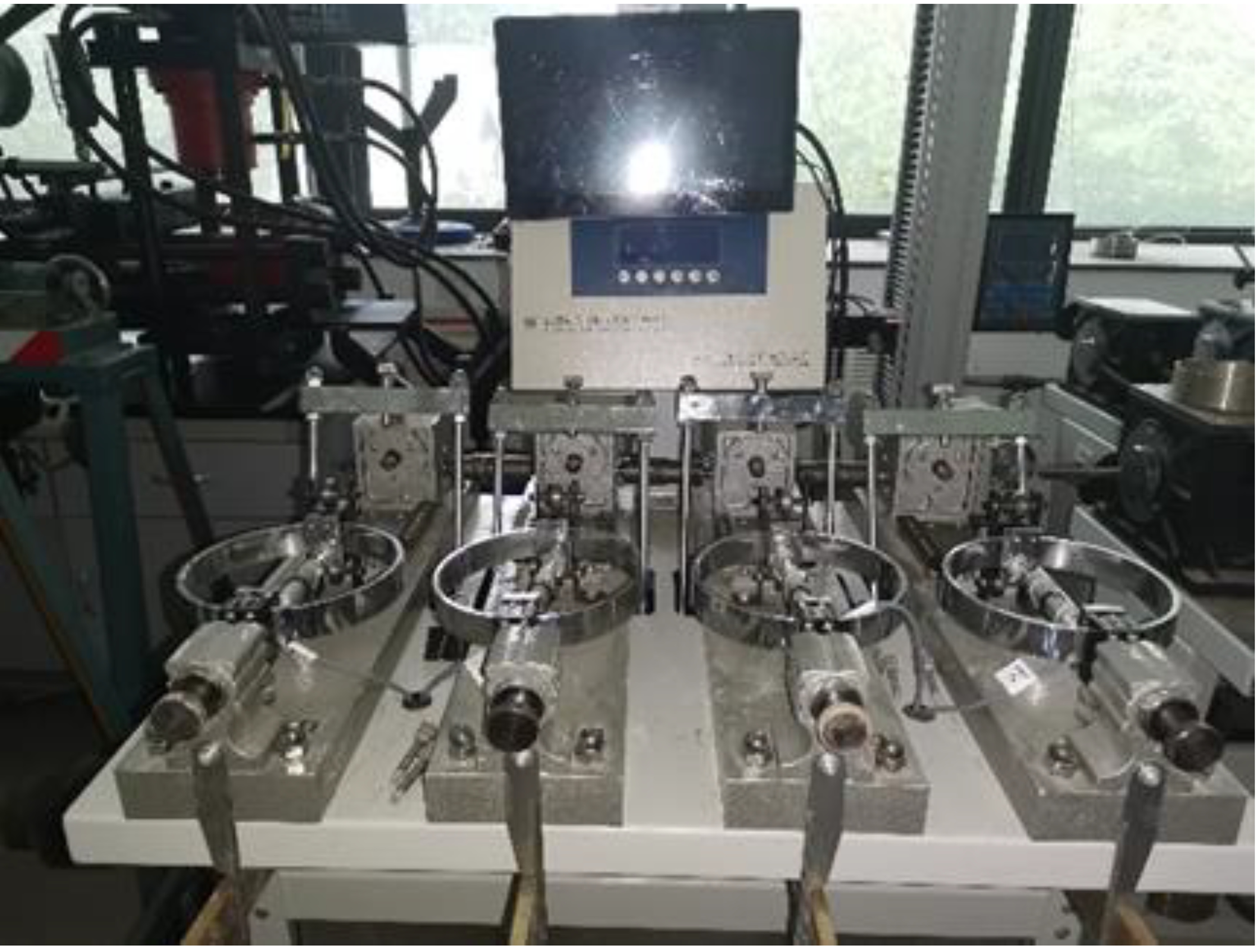 4)试验4:保水复垦土壤材料的抗剪特性试验。取试验3中的4种配比的保水复垦土壤材料做成环刀标准试样,进行固结排水-直接剪切试验,对试验数据进行处理,绘制出抗剪强度与垂直压力的关系曲线,进而得到不同配比保水复垦土壤材料的黏聚力和内摩擦角,固结排水-直接剪切试验采取ZJ应变控制式直剪仪(4联剪),剪切进度为0.2 mm/min,垂直载荷分级为100、200、300、400 kPa,试验设备如图1所示。