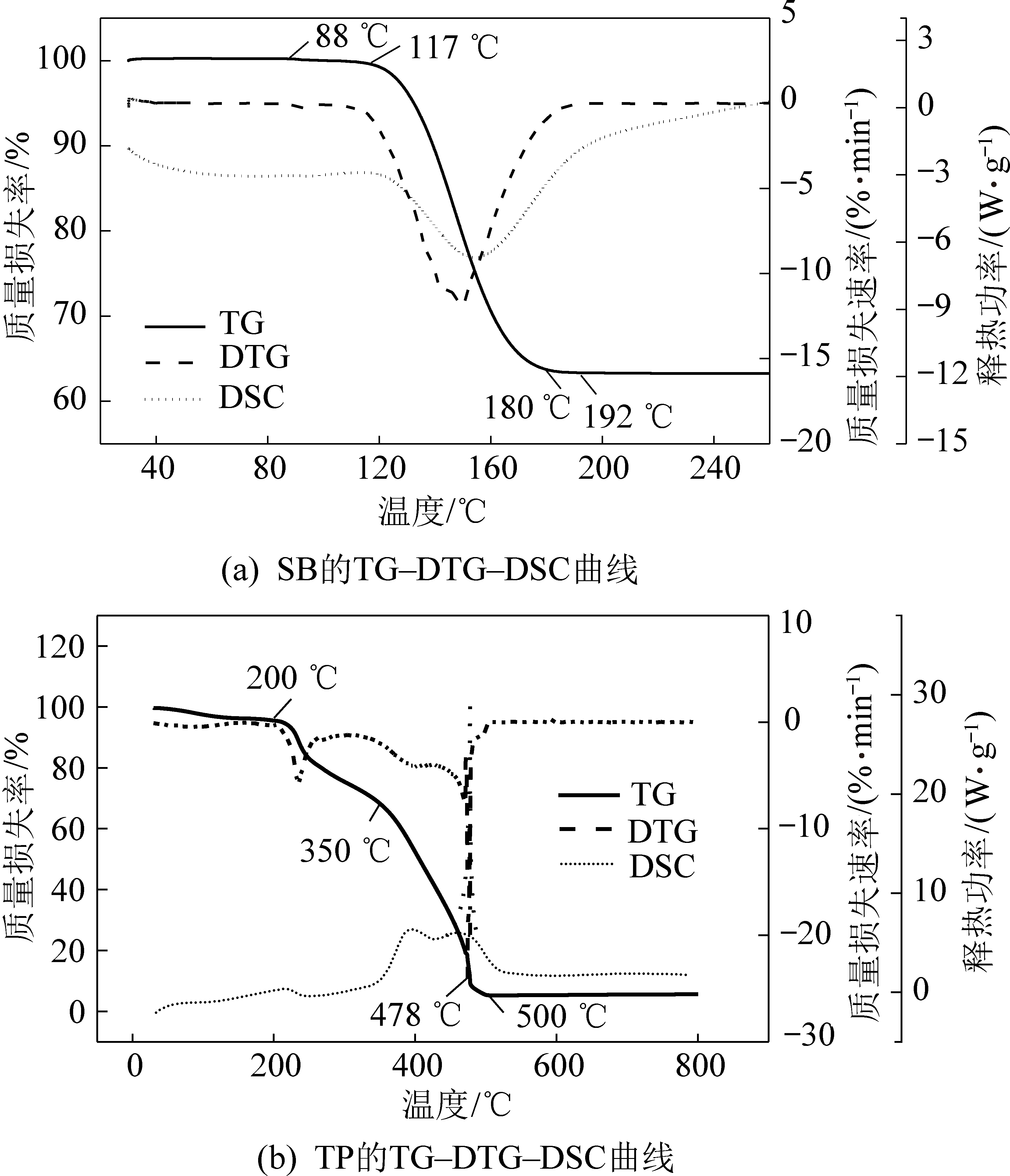 碳酸氢钠(SB)作为一种物理阻化剂,在200 ℃以下可热分解出CO2抑制煤自燃。茶多酚(TP)是一种广泛存在于植物中的纯天然绿色抗氧化剂,可以抑制多种活性自由基的反应。YAO等[8]研究证实茶多酚是一种潜在的、优越的、环保的阻燃剂。在200 ℃之上,其结构断裂重组,消耗煤中活性基团,进行化学抑制煤自燃。因此,在综合考虑2种阻化剂在不同阶段抑制煤氧化的基础上,开展复配阻化剂研究,期望2种物质通过功能互补更加有效的抑制煤自燃。将碳酸氢钠与茶多酚混合制备成不同浓度的复合阻化剂,分析其对煤氧化过程的抑制作用,揭示微观阻化机理,为阻化剂抑制煤自燃灾害提供理论依据。