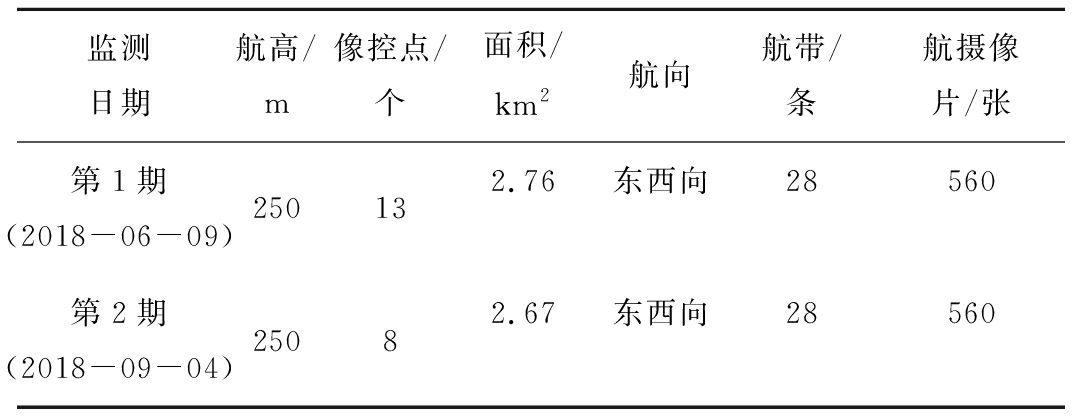 监测日期航高/m像控点/个面积/km2航向航带/条航摄像片/张第1期(2018-06-09)250132.76东西向28560第2期(2018-09-04)25082.67东西向28560