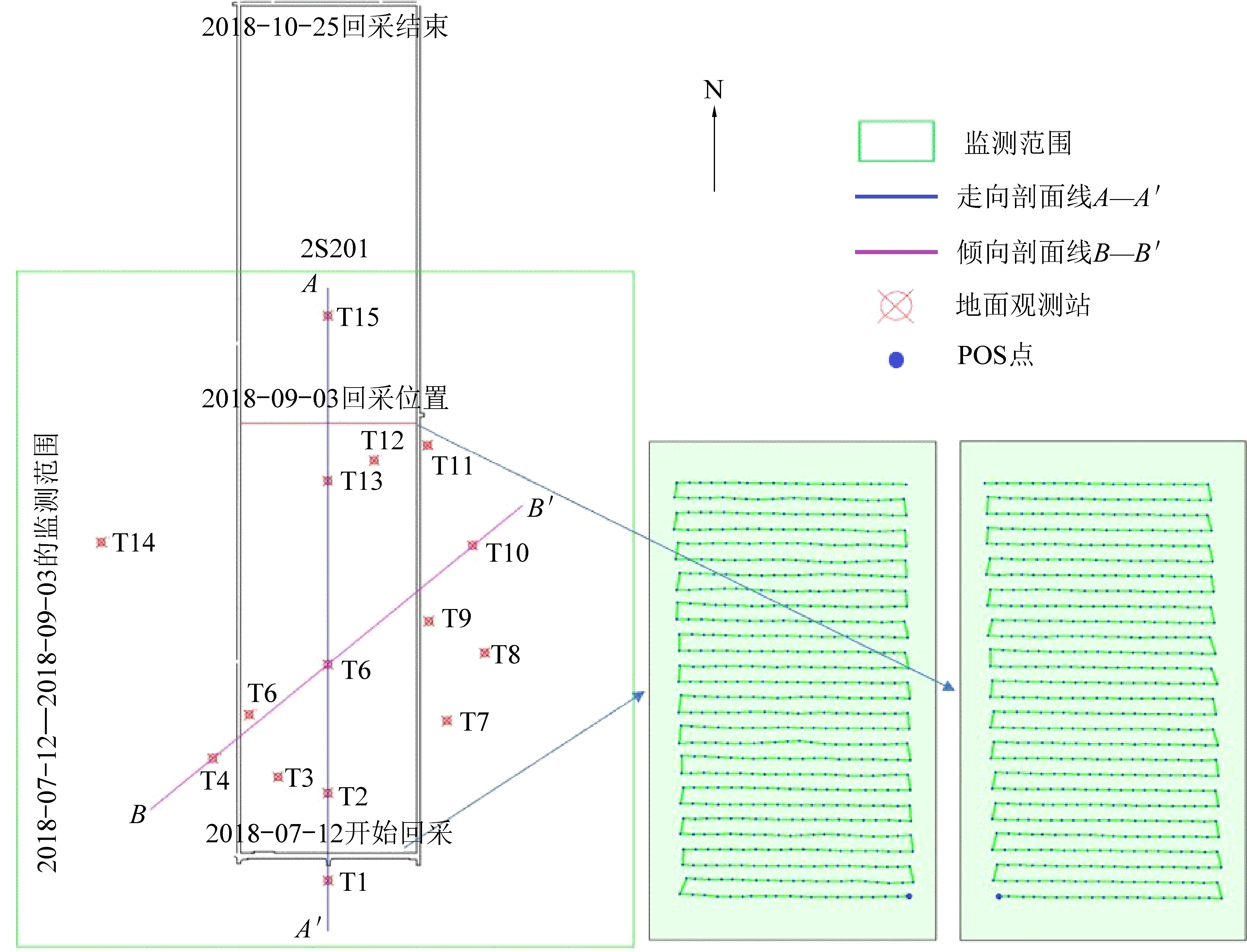 煤炭开采在满足国家能源需求的同时也导致严重的矿区地质环境损害问题,比如矿区地表沉陷、地裂缝等地质灾害,土地损坏、植被退化、水体流失等矿区环境损害。煤炭开采引起岩层及地表变形是产生矿山地质环境损害的根源。随着国家供给侧结构性改革、我国能源战略调整以及东部煤炭资源逐渐枯竭,西部地区已成为我国未来主要煤炭资源产地[1-3]。同时,我国采煤方法发展迅速,采煤方法已由以往的炮采、普采、综采和综放开采迅速向无人化、智能化开采方向变革[3-5]。这使得我国西部以大规模、高强度快速开采为主,开采引起的地表移动损害也呈现出变形速度快、损害程度深、波及范围广的特点[6-9]。由于西部生态环境脆弱,煤炭开采引起的地质与环境损害问题成为重点关注和研究的焦点[10-13]。然而,西部矿区地表沉陷监测数据较少,沉陷规律研究不深入,更没有适合的沉陷参数。随着国家对环境保护要求越来越严格,矿区环境损害监测及评估已经成为西部矿山企业面临的巨大难题。在这种形势下,如何快速、准确、全面地监测西部高强度开采引起的地表沉陷与环境损害是解决问题的关键。而目前常规地表移动与变形监测方法已经无法适应我国新形势下的矿山开采损害监测需求[14-15]。随着测绘技术的快速发展,如何充分利用测绘新技术,突破理论与技术瓶颈,建立新形势下的矿山开采损害监测理论、技术与方法,以适应西部煤炭大规模、高强度开采地质环境损害监测任务,是目前资源开发与生态环境保护亟须解决的重大问题。
