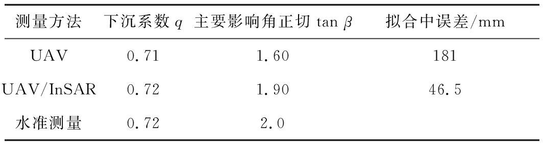 测量方法下沉系数q主要影响角正切tan β拟合中误差/mmUAV0.711.60181UAV/InSAR0.721.9046.5水准测量0.722.0