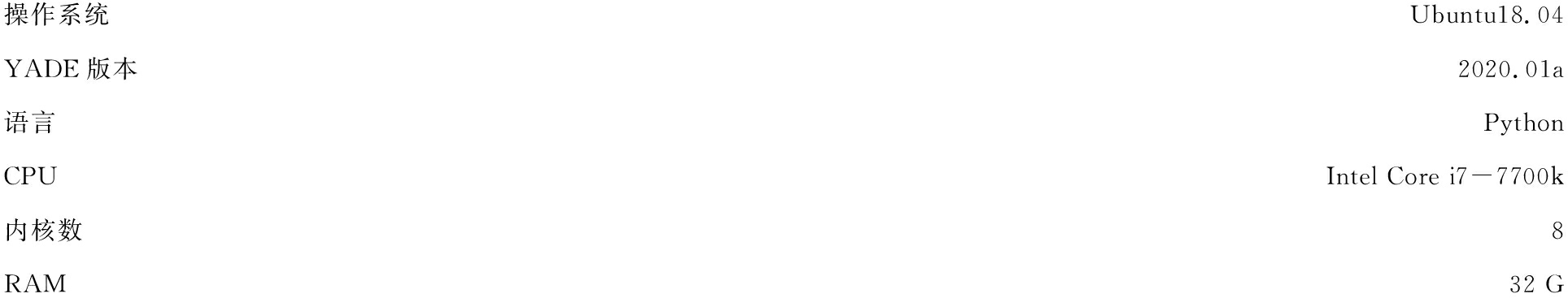 在Linux操作系统上,结合YADE离散元开源环境进行试验,并采用多核CPU并行加速,具体试验环境如下: