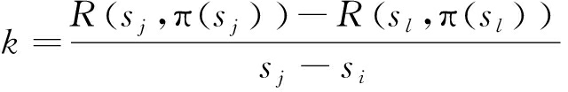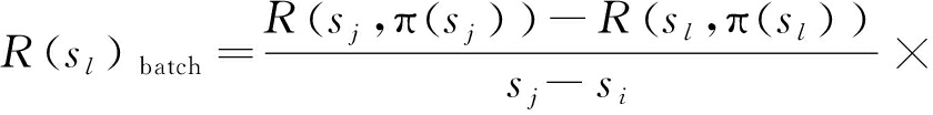 若存在前一时刻采样状态si及当前采样状态sj,且前后状态下所执行动作一致,即π(sj)=π(si),则设精细化变化的离散状态空间{si,…,sl,…,sj},对应的瞬时奖赏值{R(si,π(si)),…,R(sl,π(sl)),…,R(sj,π(sj))}。采用等差值划分的方式对未采样状态sl所对应瞬时奖赏值R(sl,π(sl))进行估计,如式(9)所示: