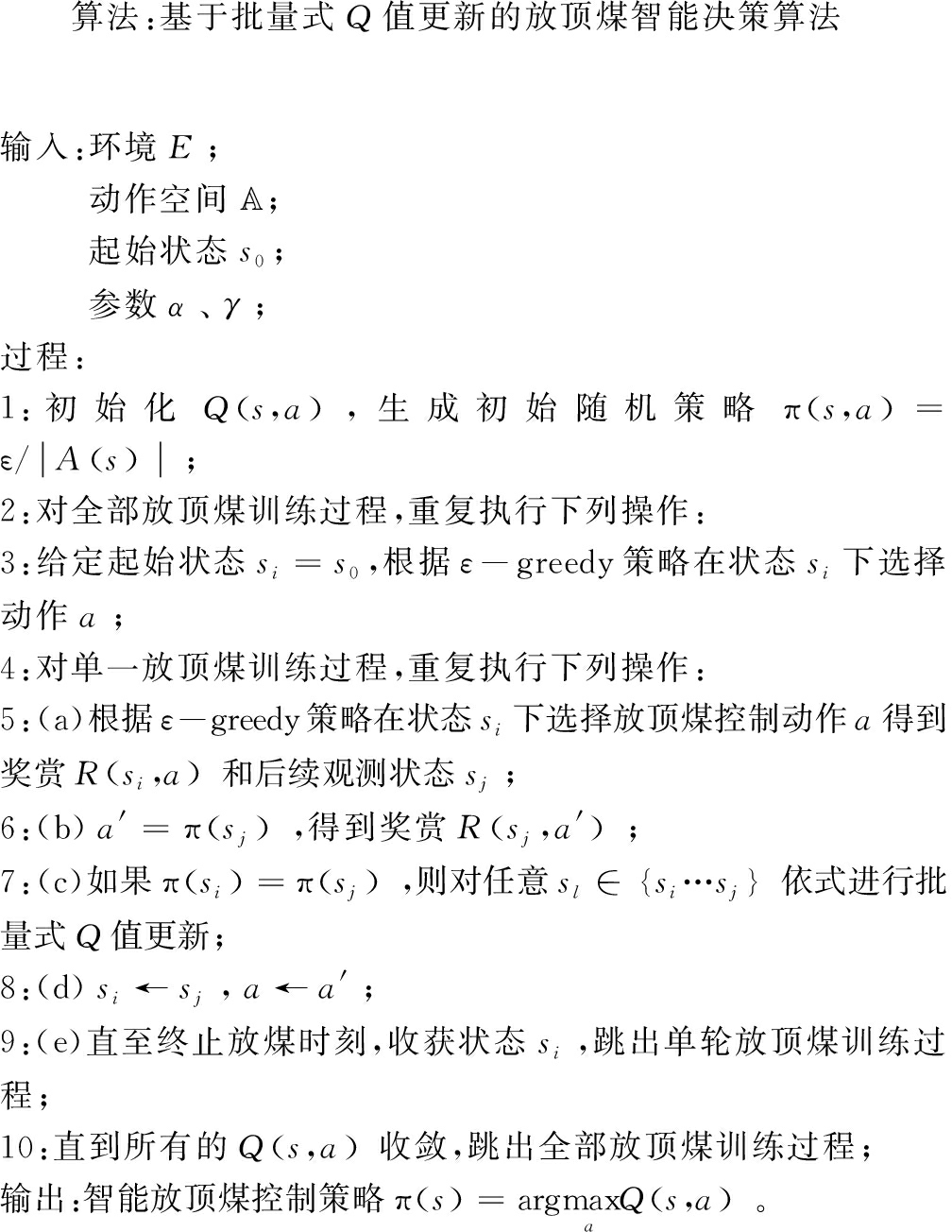 结合目标函数式,给出放顶煤开采环境下,基于批量式Q值更新的放顶煤智能决策算法伪代码:
