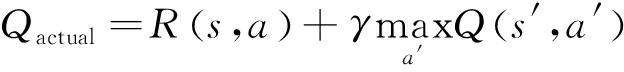 Q-learning算法通过Qactual与Qestimate之间的差值来更新Q值表,以此来逼近目标函数。第k+1次Qk+1(s,a)值学习结果表示为如下形式: