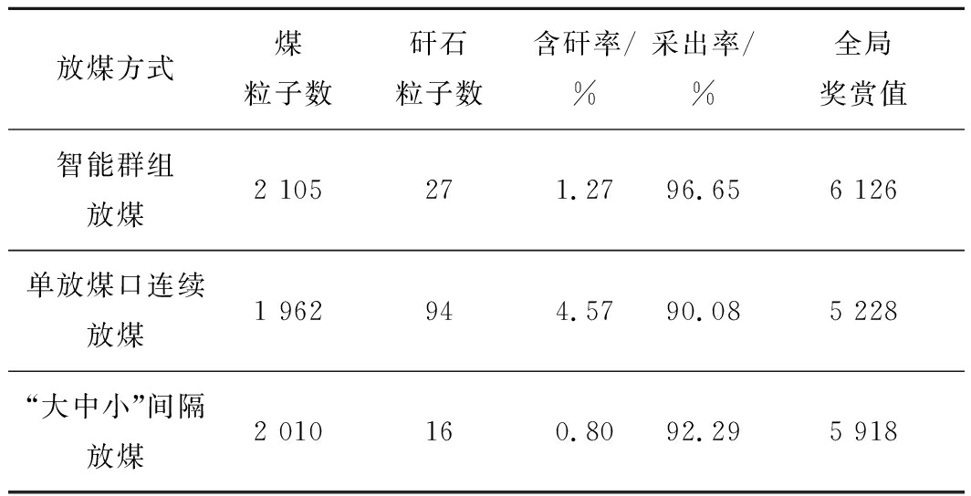 将提出的智能群组放煤方法与传统以“见矸关窗”为准则的单放煤口连续放煤、“大中小”间隔放煤等放煤方式进行放煤结果对比,见表2。