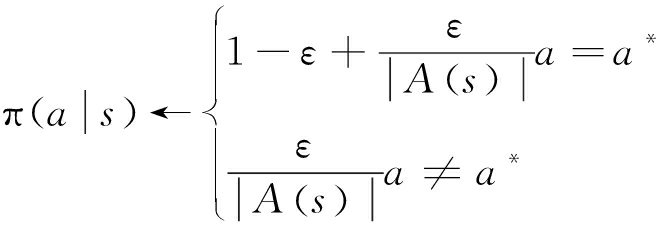 式中:π(a|s)为“状态-动作”选择策略,由概率值表示;ε∈(0,1),表示探索率;|A(s)是状态s条件下可选的动作数量;a*为候选动作的最优值,即