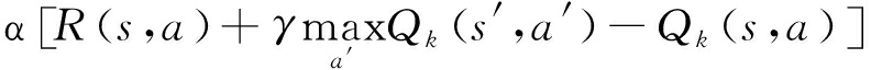 式中:k为采样次数;α∈(0,1)为学习率;R(s,a)为状态s下,执行a动作的单步奖赏值。