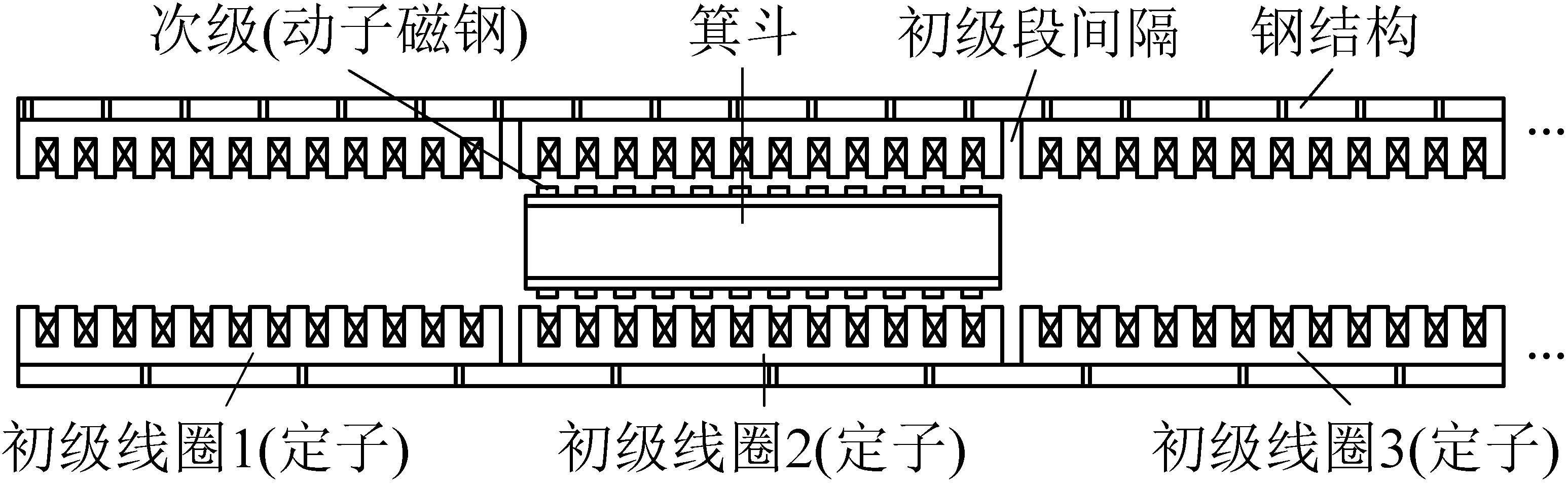 1)直线电机辅助提升系统选用动磁钢型初级分段永磁直线同步电机,初级采用分段式供电方式。